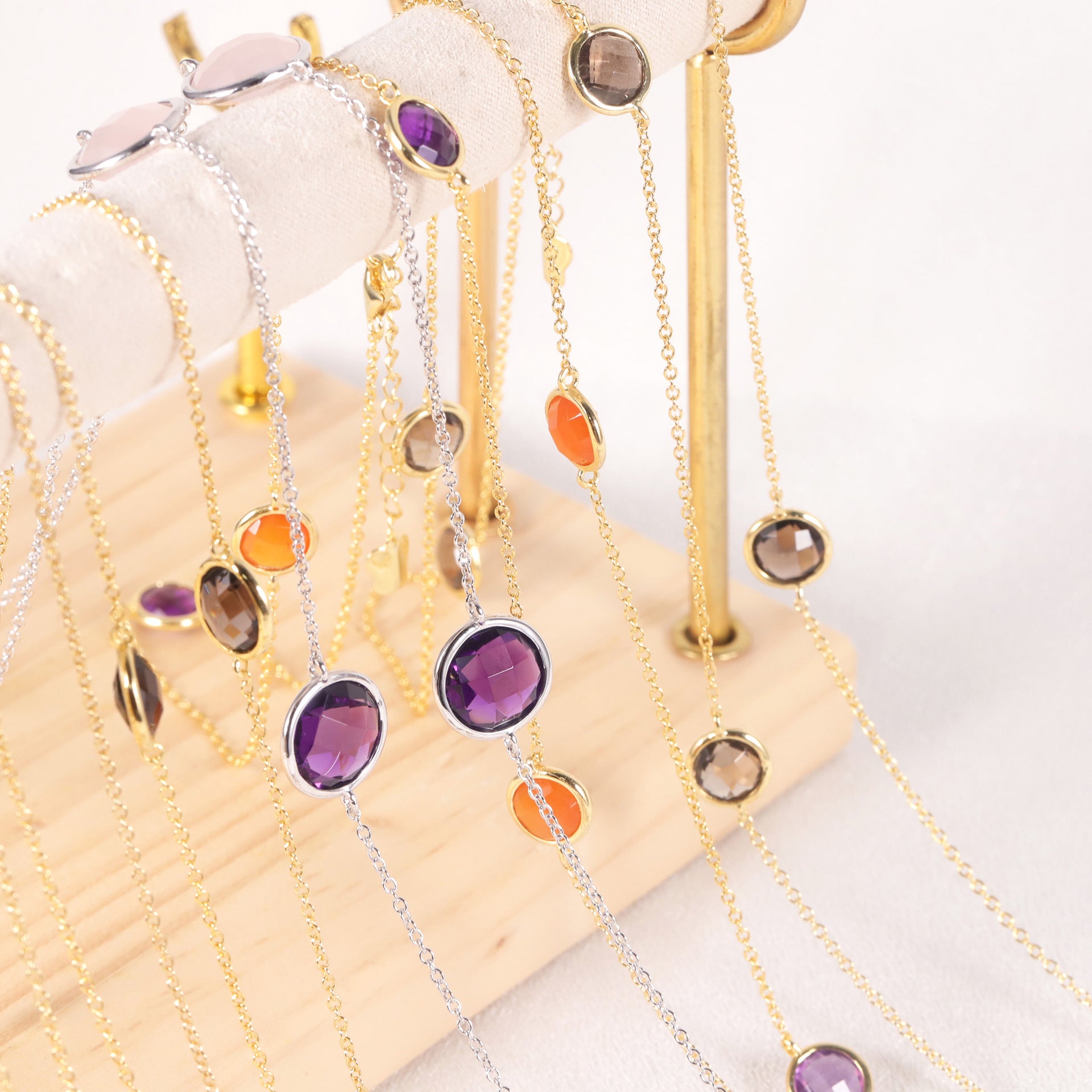 Fashion s925Silver Inlaid Natural Gemstone Sweater Chain Export Rainbow Color Mixed Gemstone Long Necklace French Style