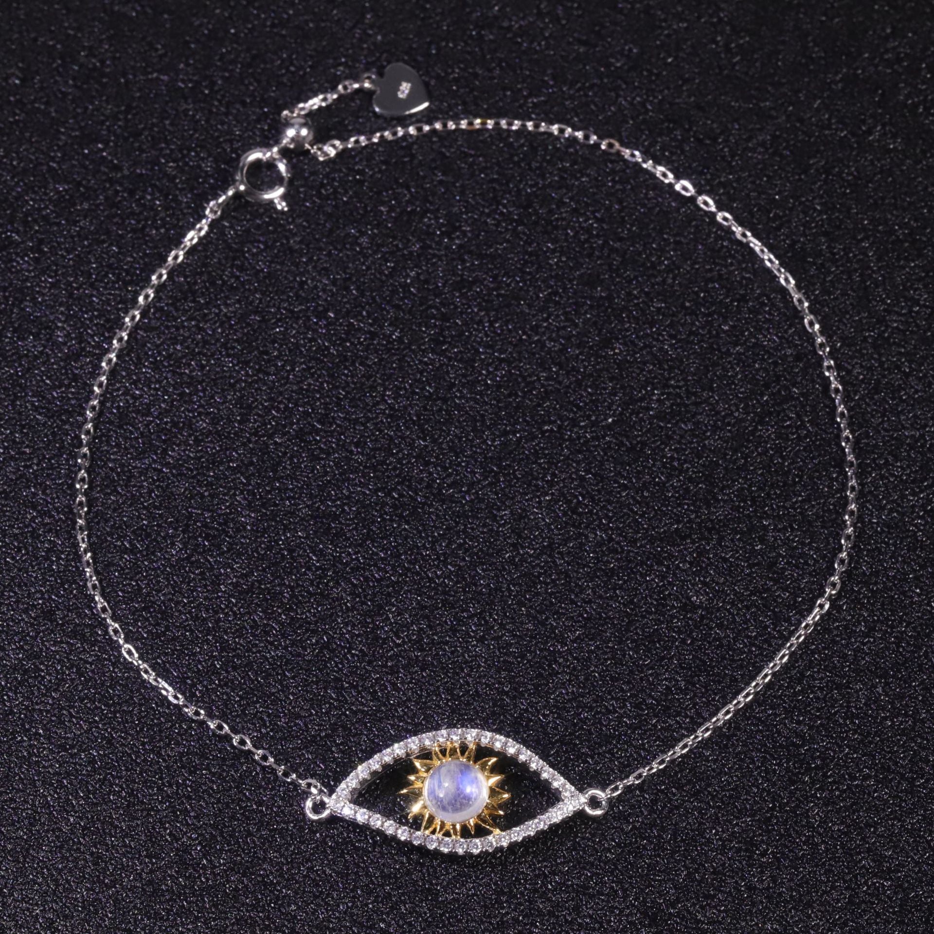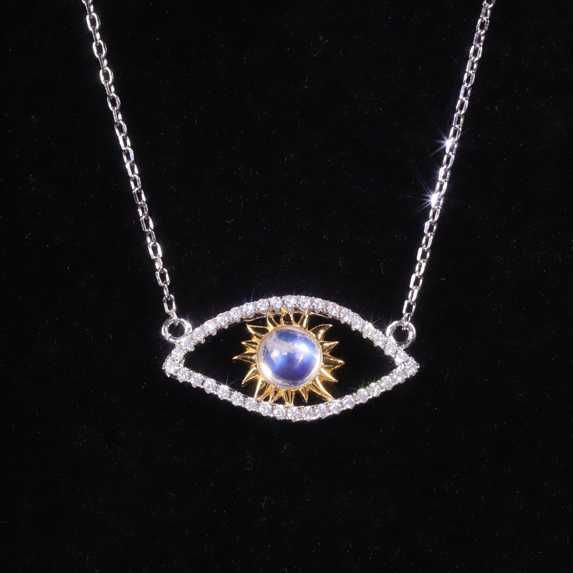 2023New High-End Demon Eye Natural Cream Blue Moonstone Ring Necklace Bracelet Set Three-Piece Set