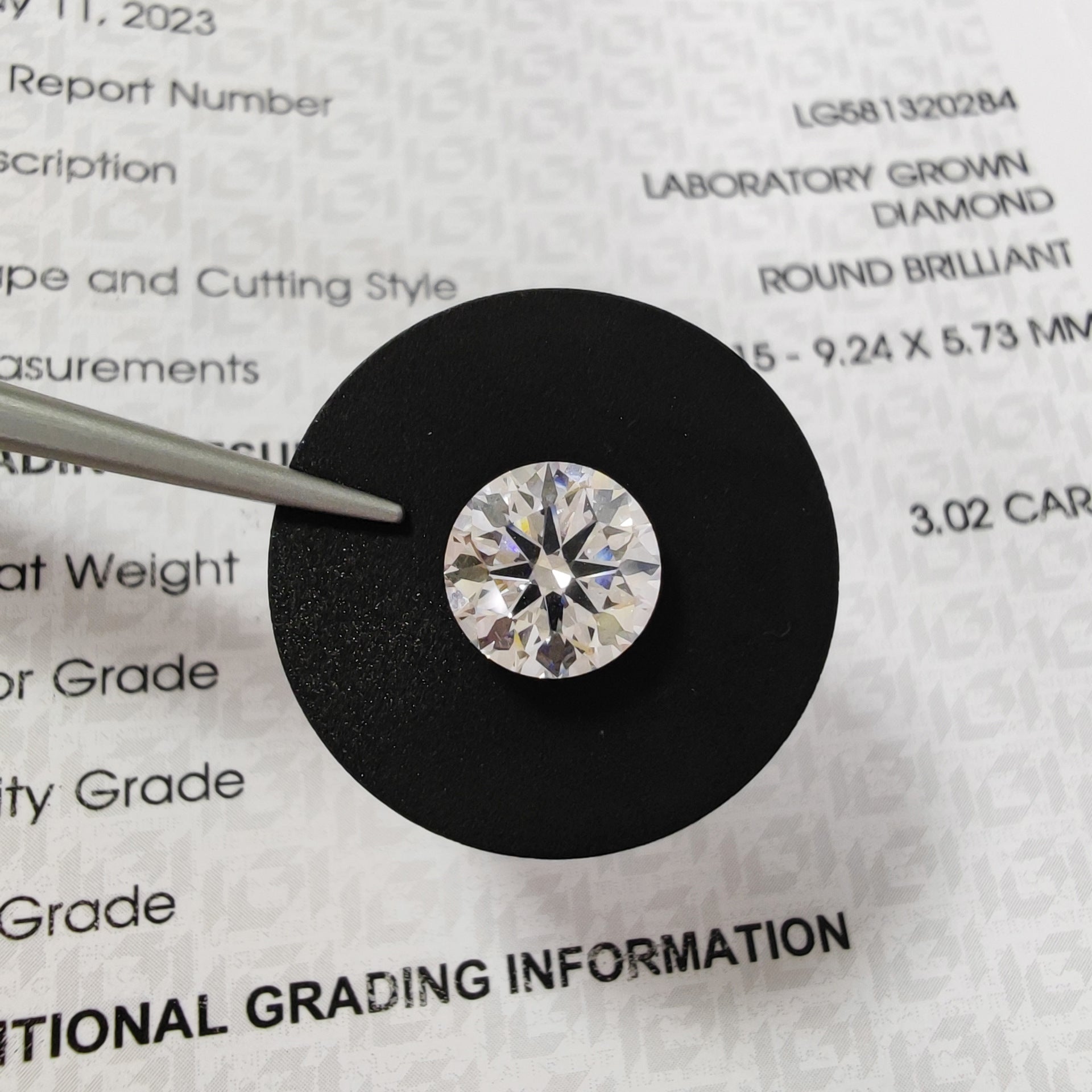 3Carat Cultivated Diamond CVD/HPHT Loose Stone Diamond Ring Wedding Ring Earrings Necklace Ring IGI Lab-grown Diamond Round Shape