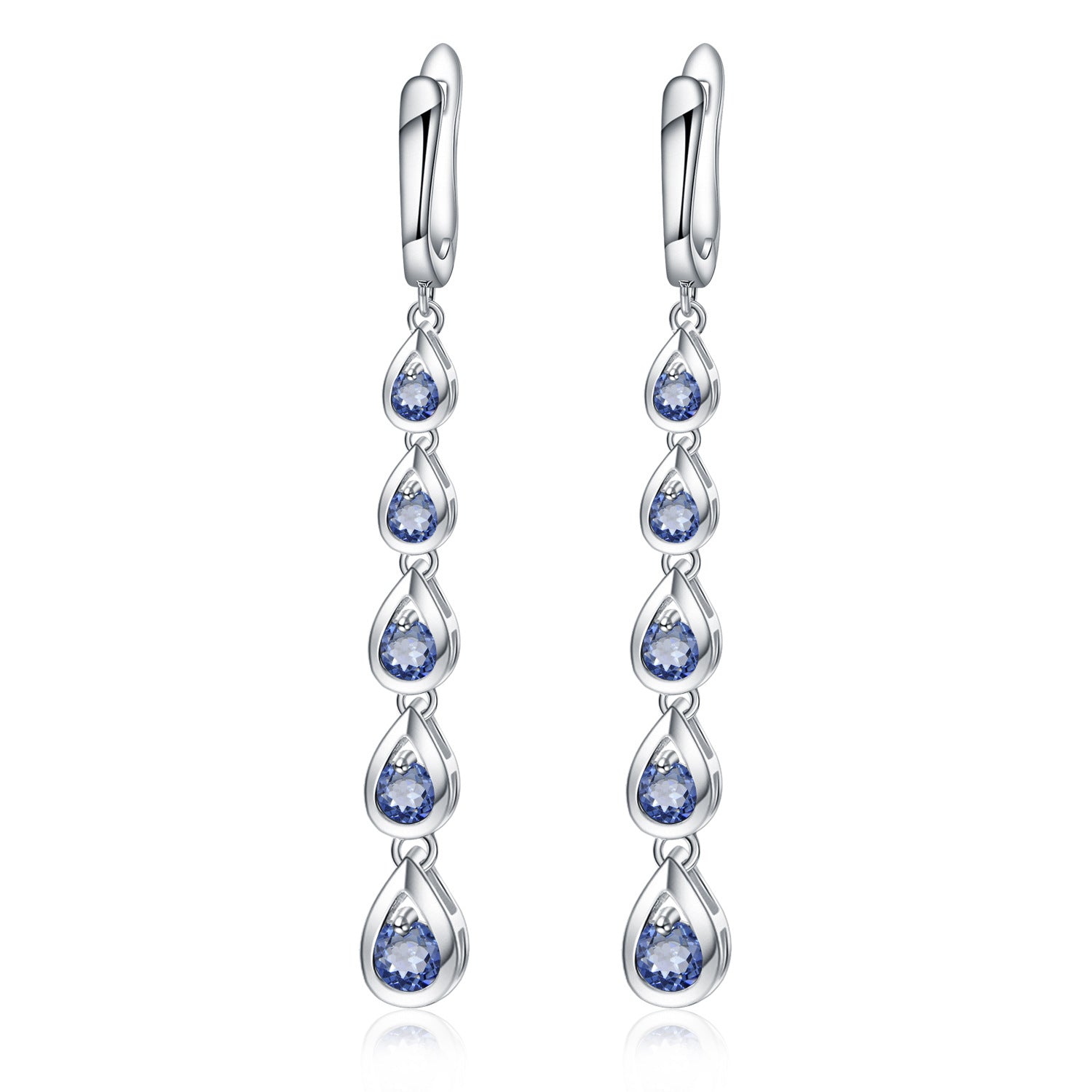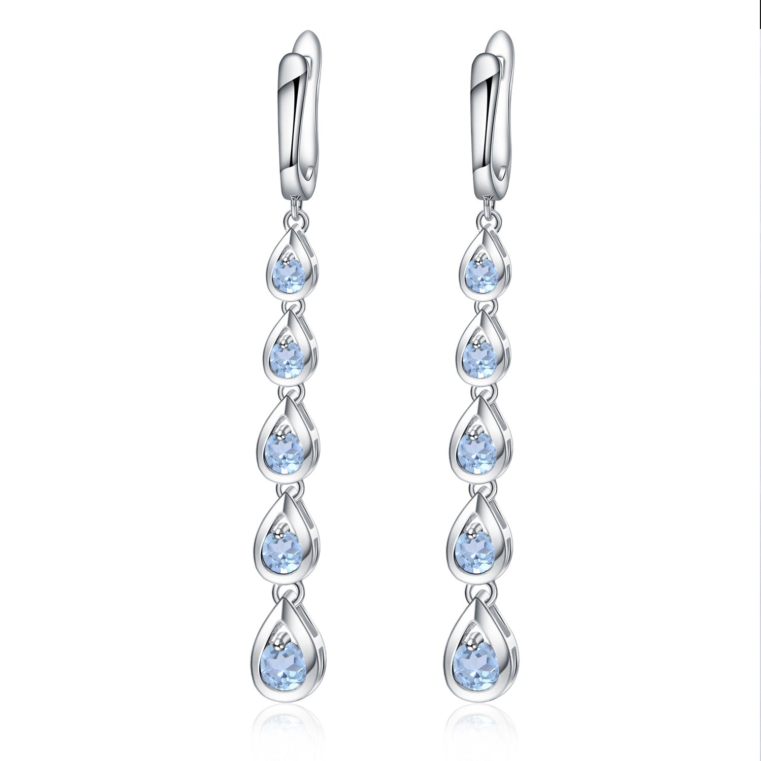 925Silver Sapphire Crystal Topaz Earrings Elegant Exaggerated High-end Sense Tassel Water Drop Long Earrings