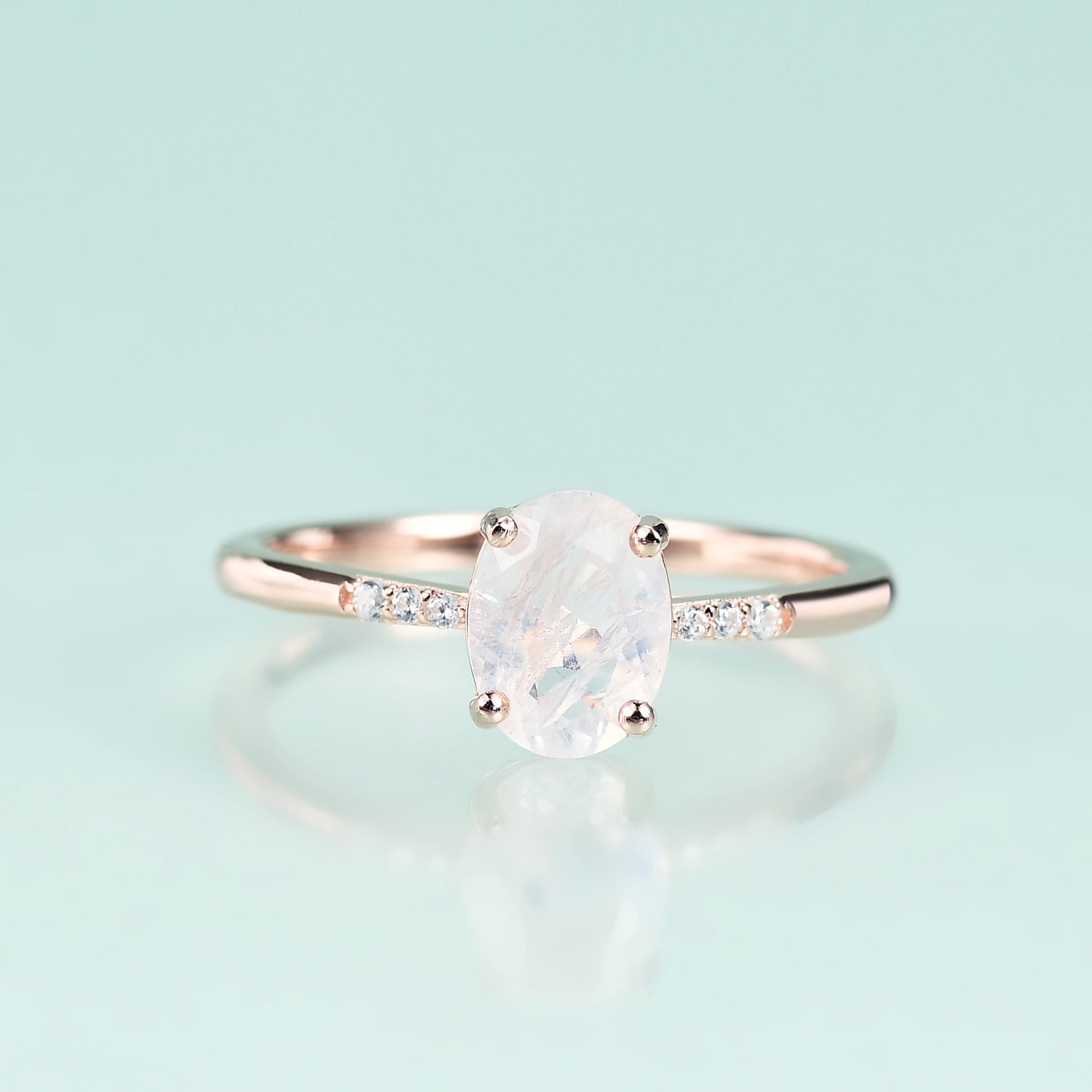 Affordable luxury fashion S925Sterling Silver Inlaid Natural Moonstone Ring Elegant and Simple Gemstone Rose Gold Ring