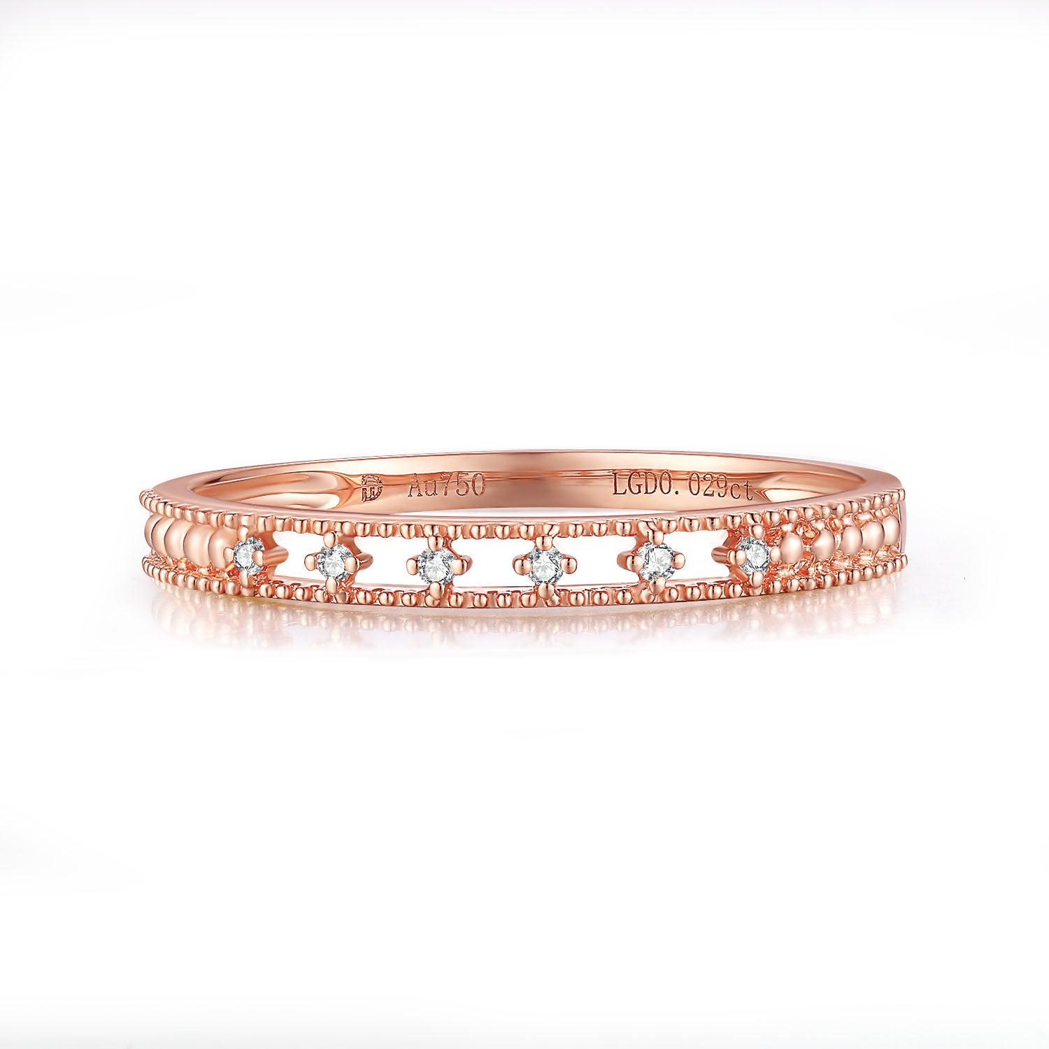 Affordable luxury style18k Gold Inlaid Cultivated Diamond Ring Stackable Side Ring Tail Ring Rose Gold Crushed Diamond Pure k Gold ring