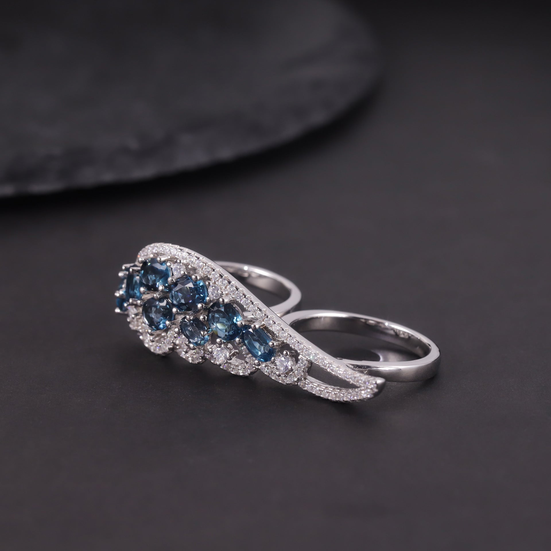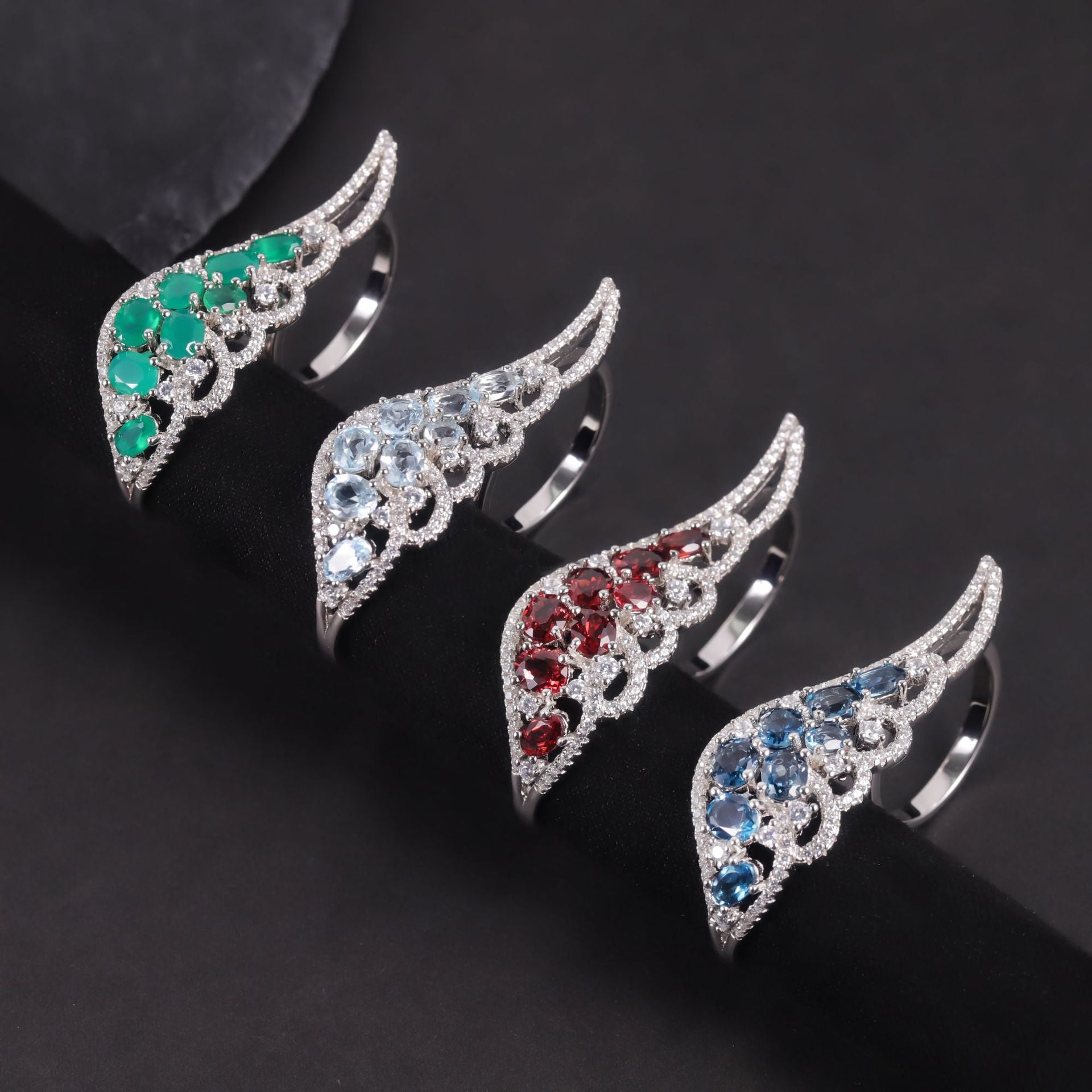 Angel Wings Gemstone Ring s925Sterling Silver Inlaid Natural Topaz Green Chalcedony Garnet Ring for Women