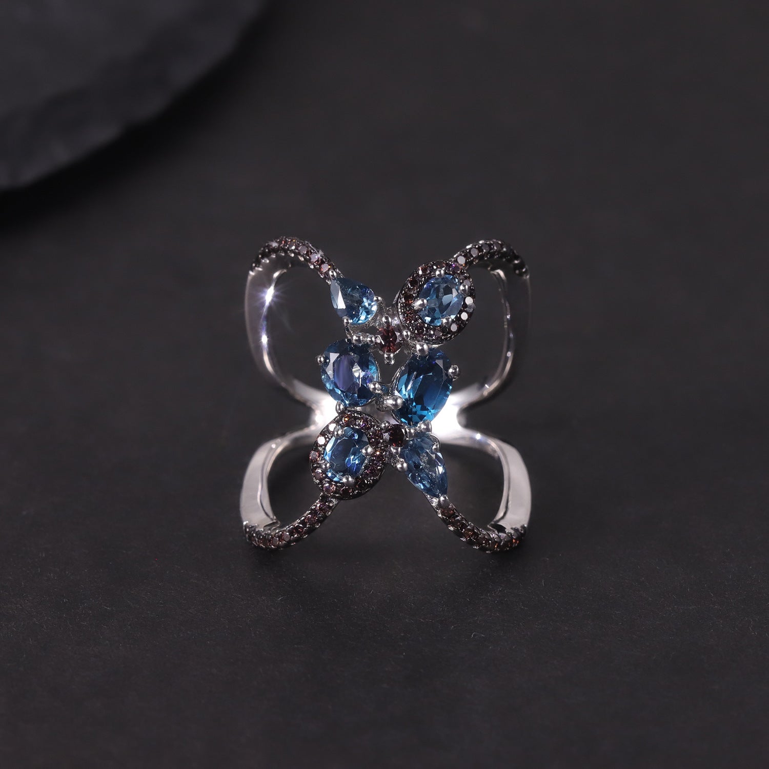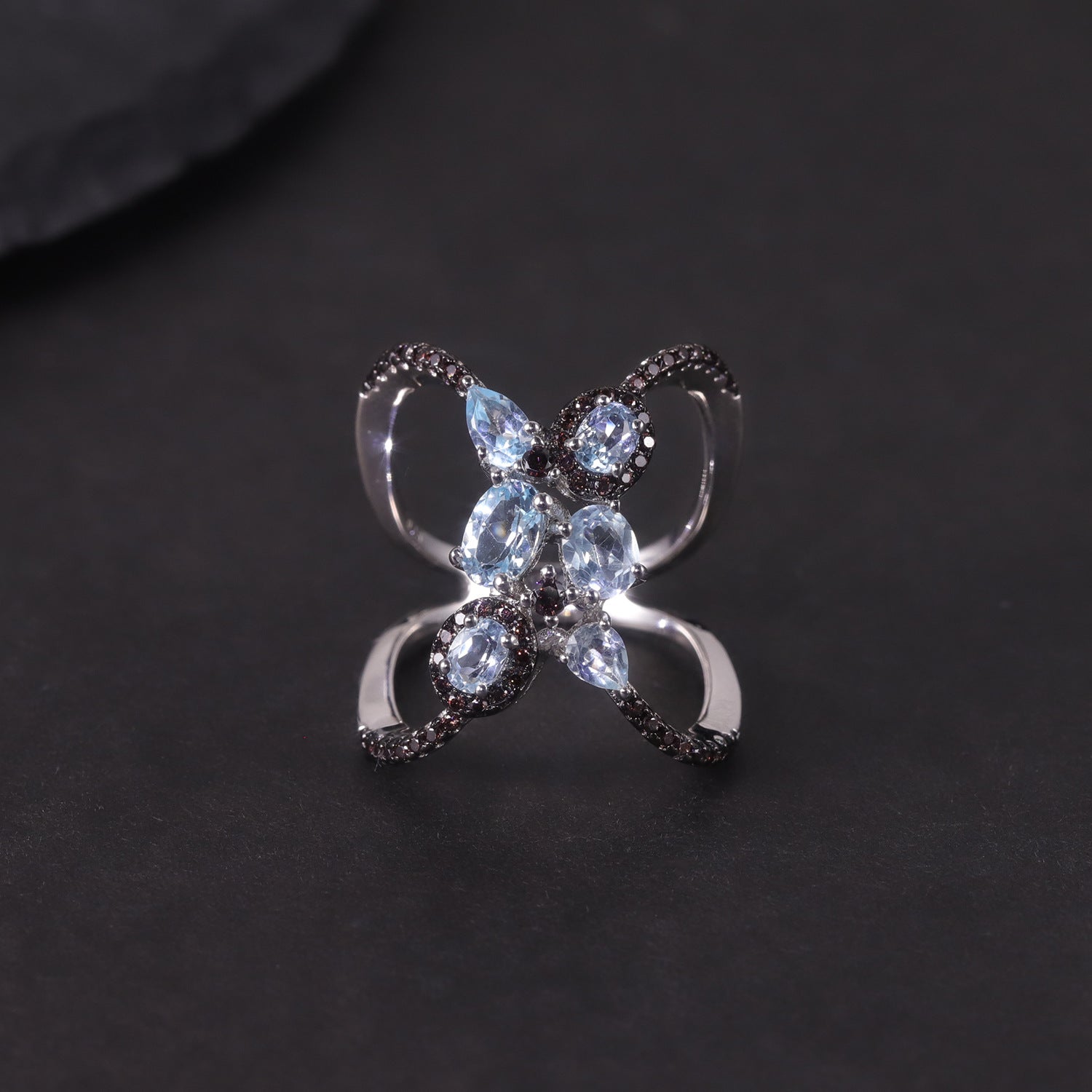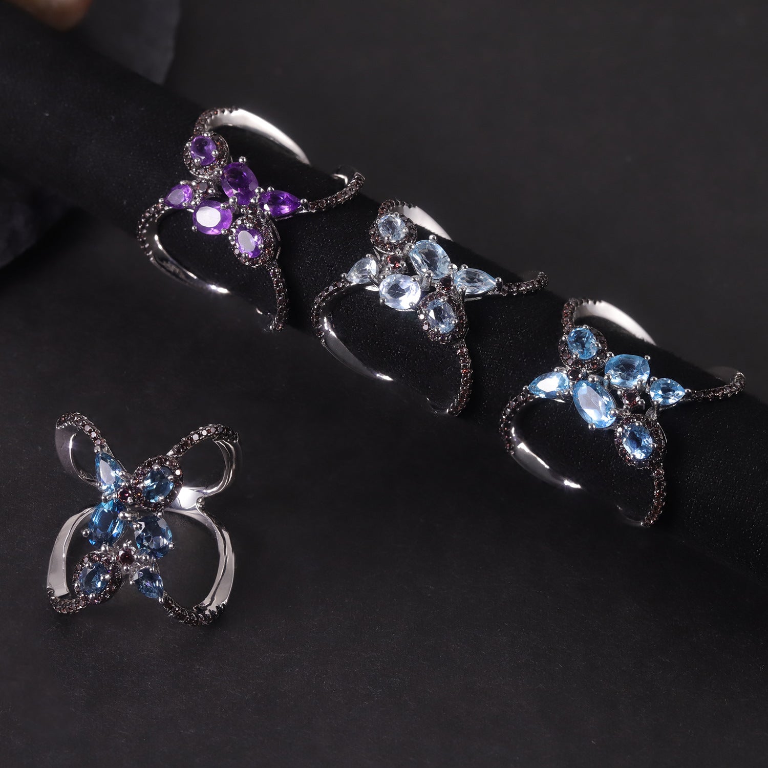 Butterfly Shape Original Design Natural Topaz Ring s925Silver Cluster Inlaid Amethyst Dark Style Couple Rings