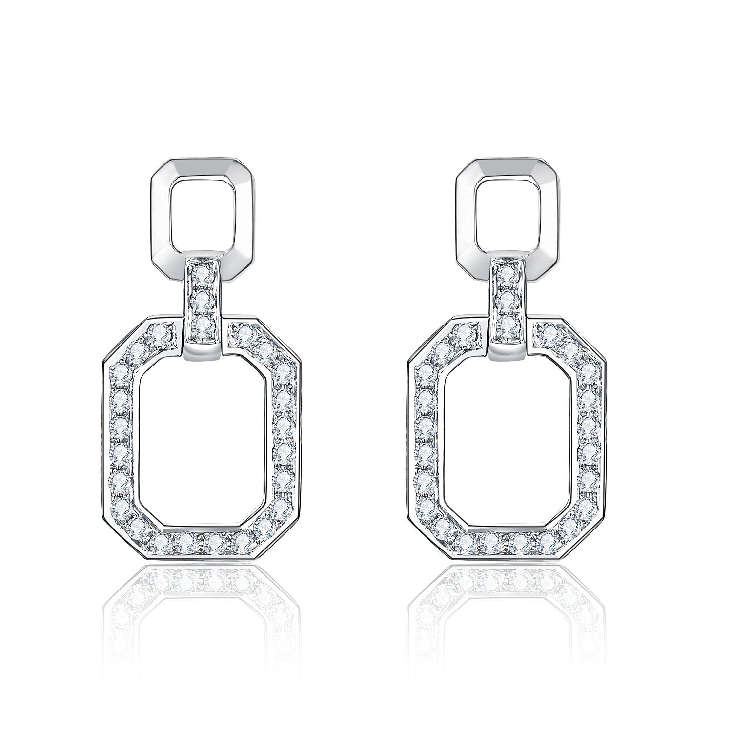 Chanel Style18k Gold Stud Earrings Inlaid with Cultivated Diamonds Geometric Square Buckle Earrings High-end Jewelry Diamond Stud Earrings Platinum