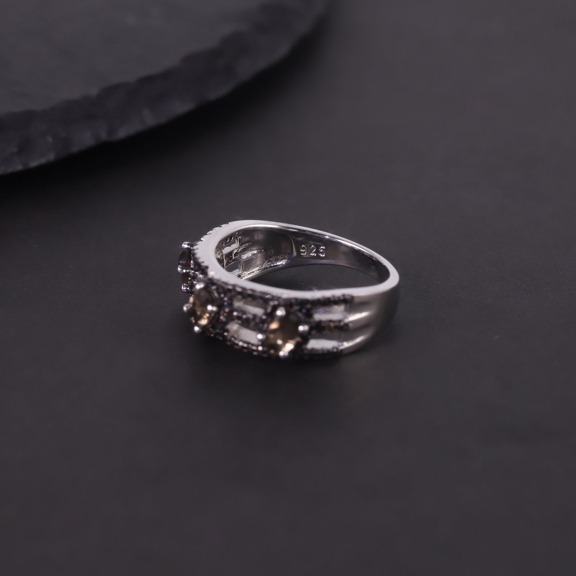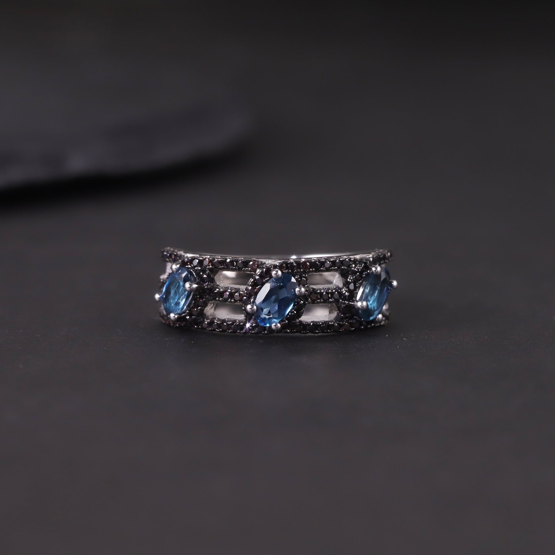 Dark Niche Natural Topaz Ring for Men and Women s925Sterling Silver Cluster Crystal Garnet Ring