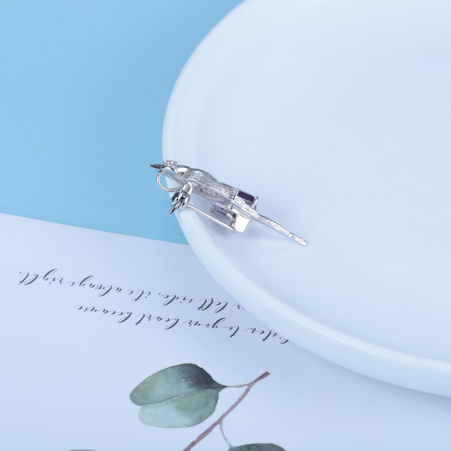 Designer Brooch Pendant Dual-use Bird Original Design925Silver Natural Gemstone Amethyst Necklace Pendant
