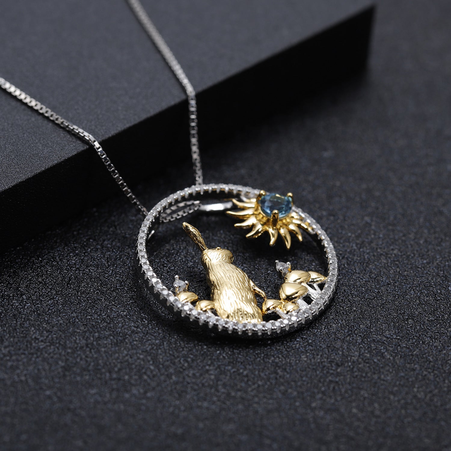Designer Chinese Style Element Pendant Twelve Zodiac Series Jade Rabbit 925Silver Natural Gemstone Necklace Pendant