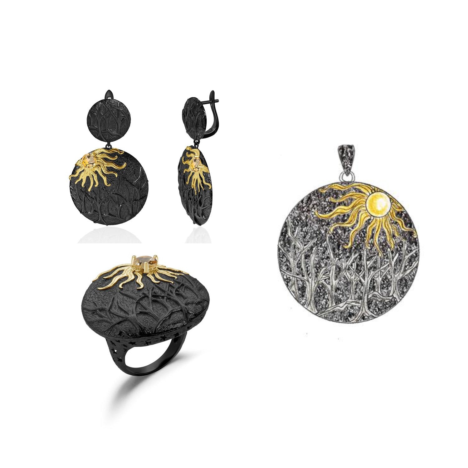Designer Dark Retro Style Ring Shan Hai Jing Kuafu Chasing the Sun Design s925Silver natural gemstone ring