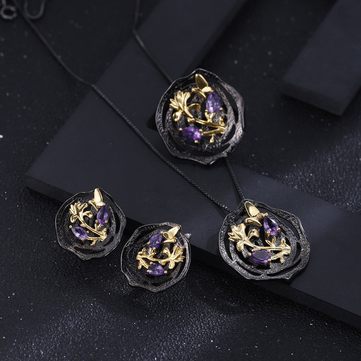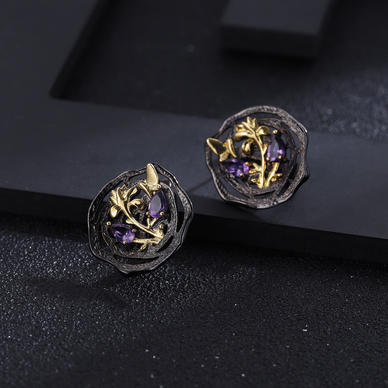 Designer High-End Gemstone Earrings Natural Style Design s925Silver Natural Rose Garnet Stud Earrings