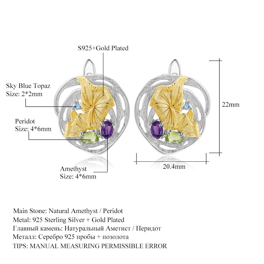 Designer High-End Gemstone Earrings Natural Style Design s925Sterling Silver Natural Gemstone Stud Earrings