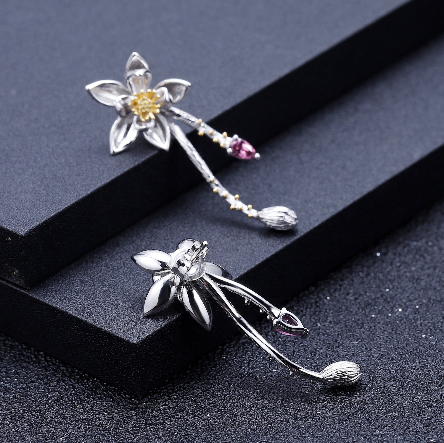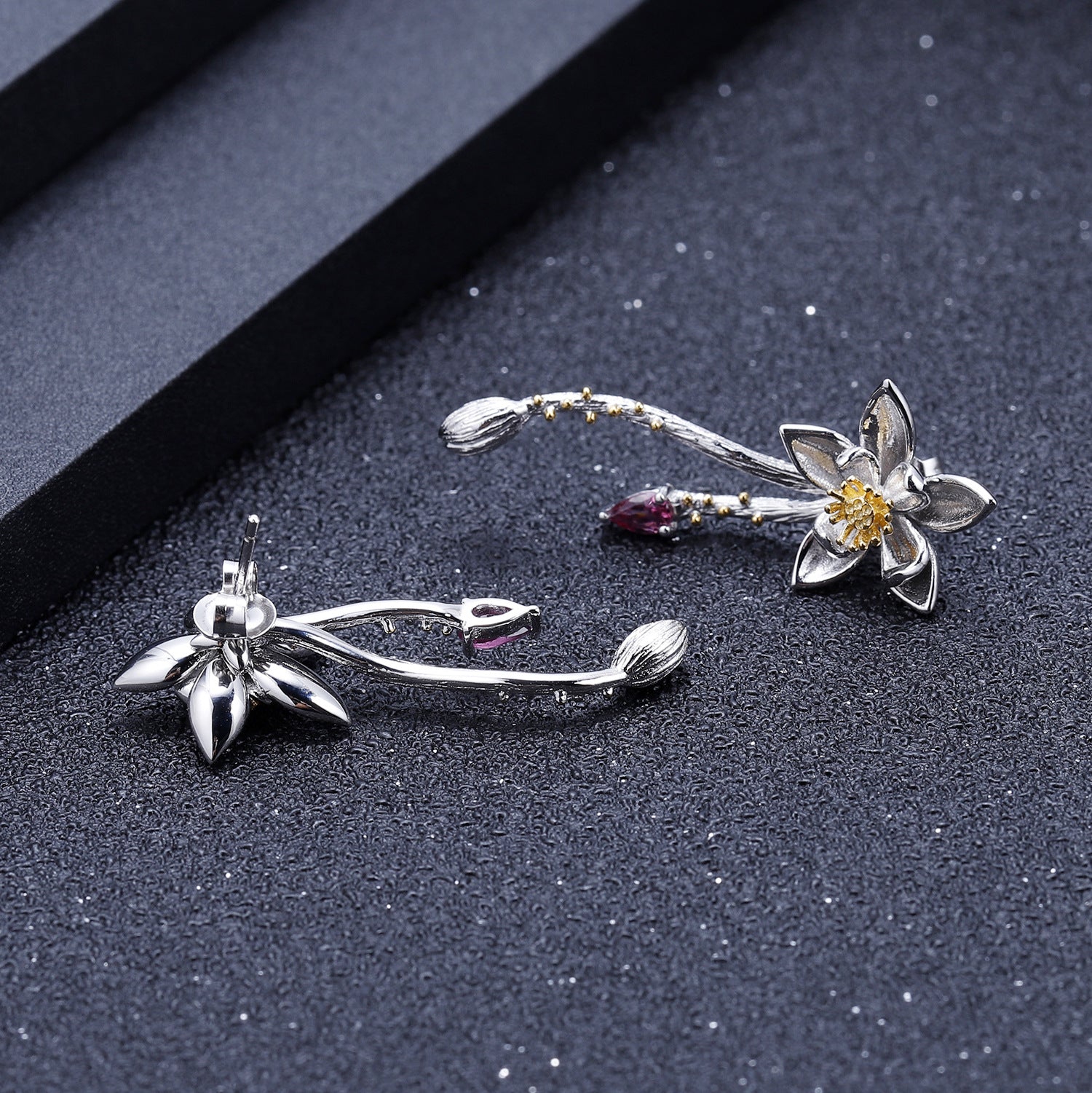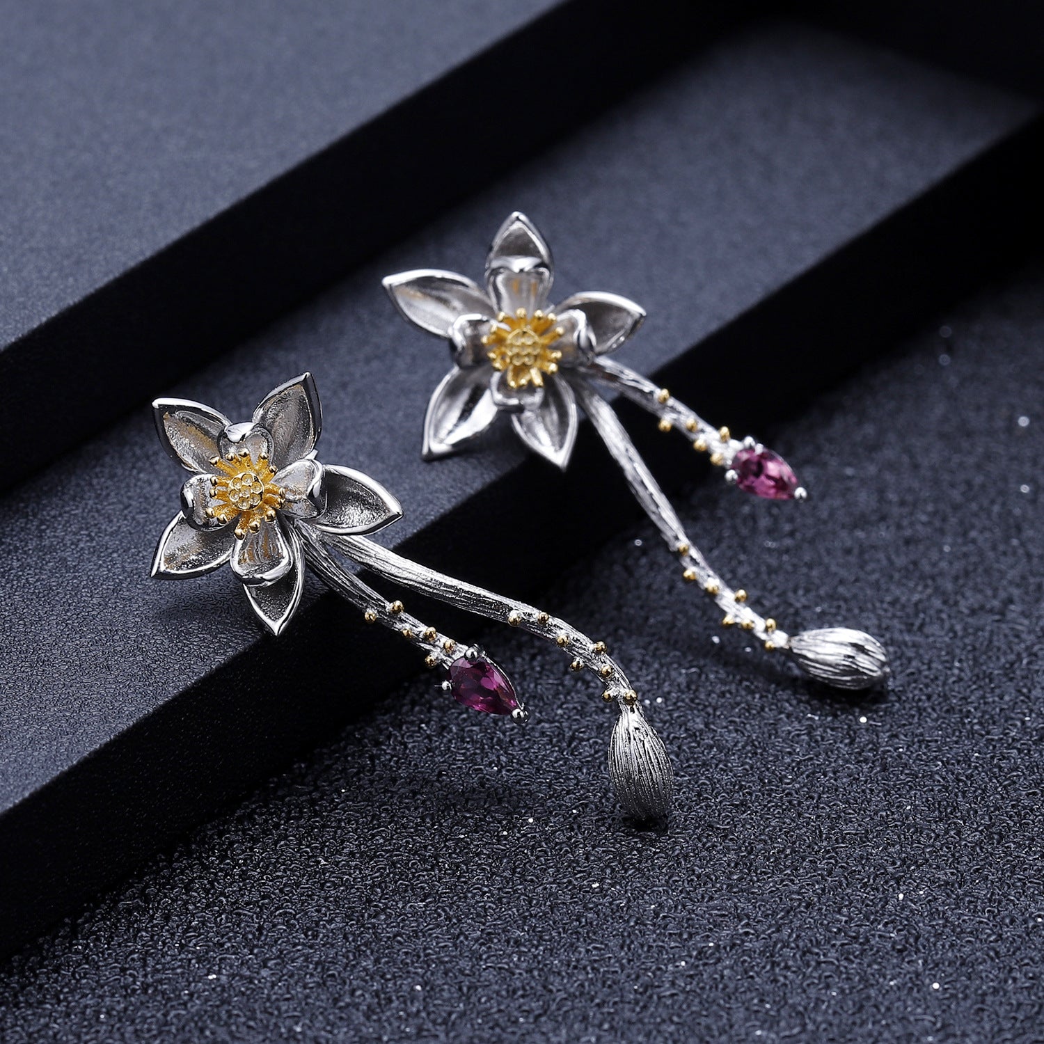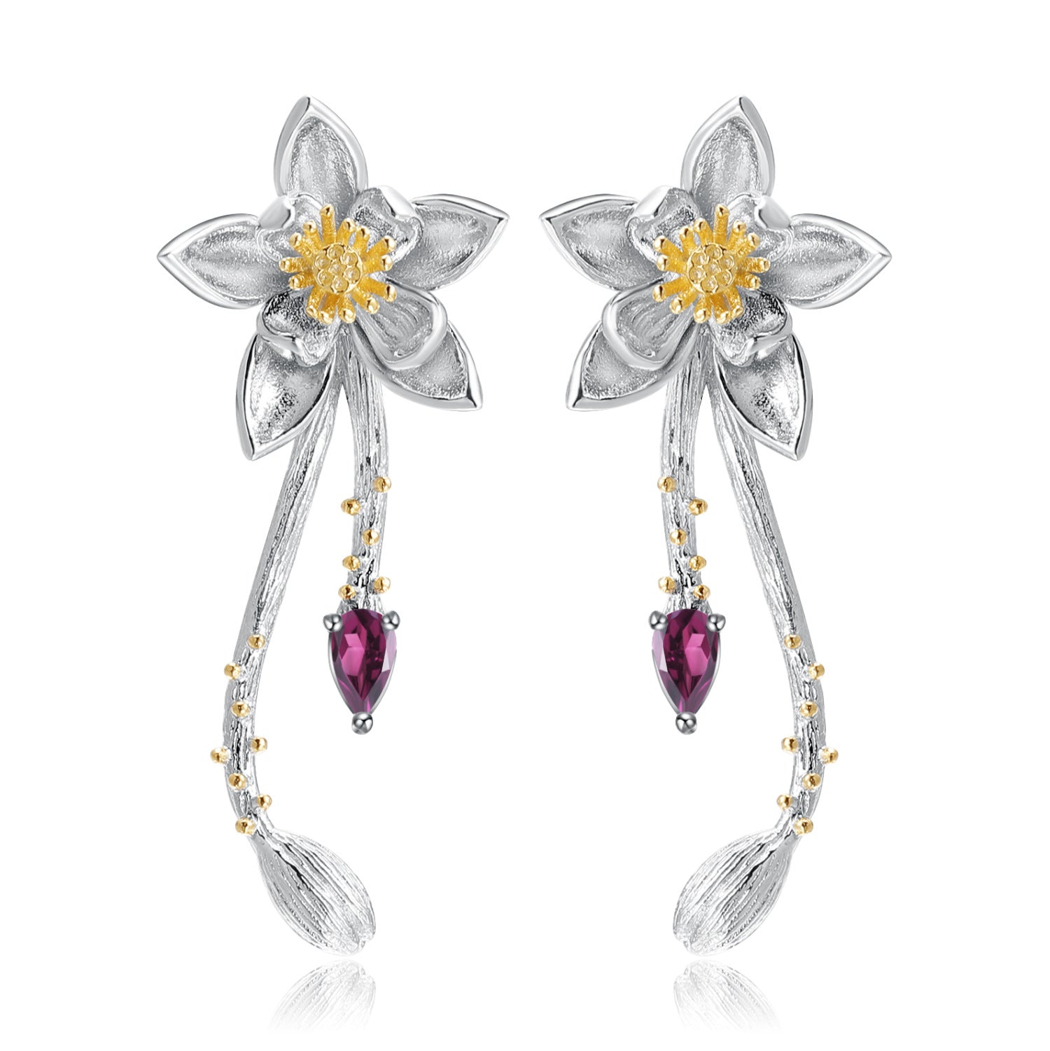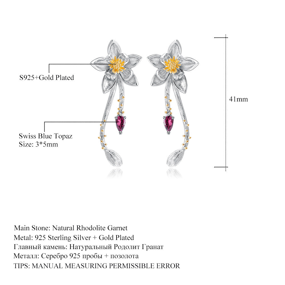 Designer High-End Gemstone Earrings Natural Style Floral Design925Silver Natural Rose Garnet Earrings
