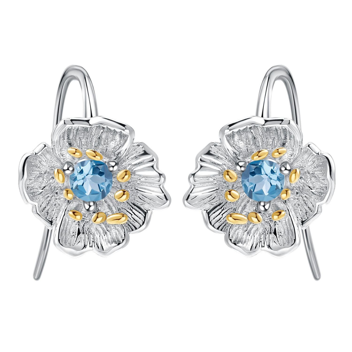 Designer High-End Gemstone Earrings Natural Style Floral Design925Silver Natural Topaz Stud Earrings