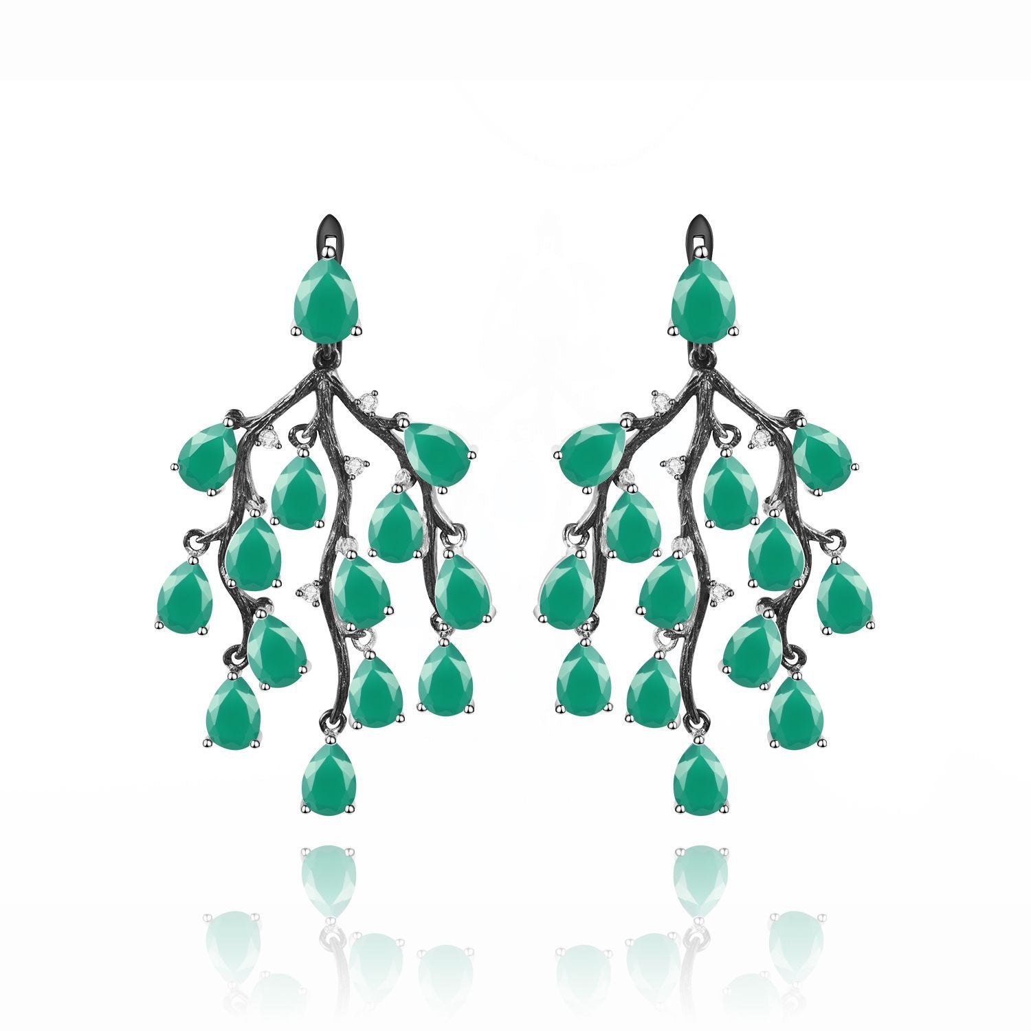 Designer High-End Green Agate Earrings Natural Willow Design s925Sterling Silver Natural Gemstone Earrings