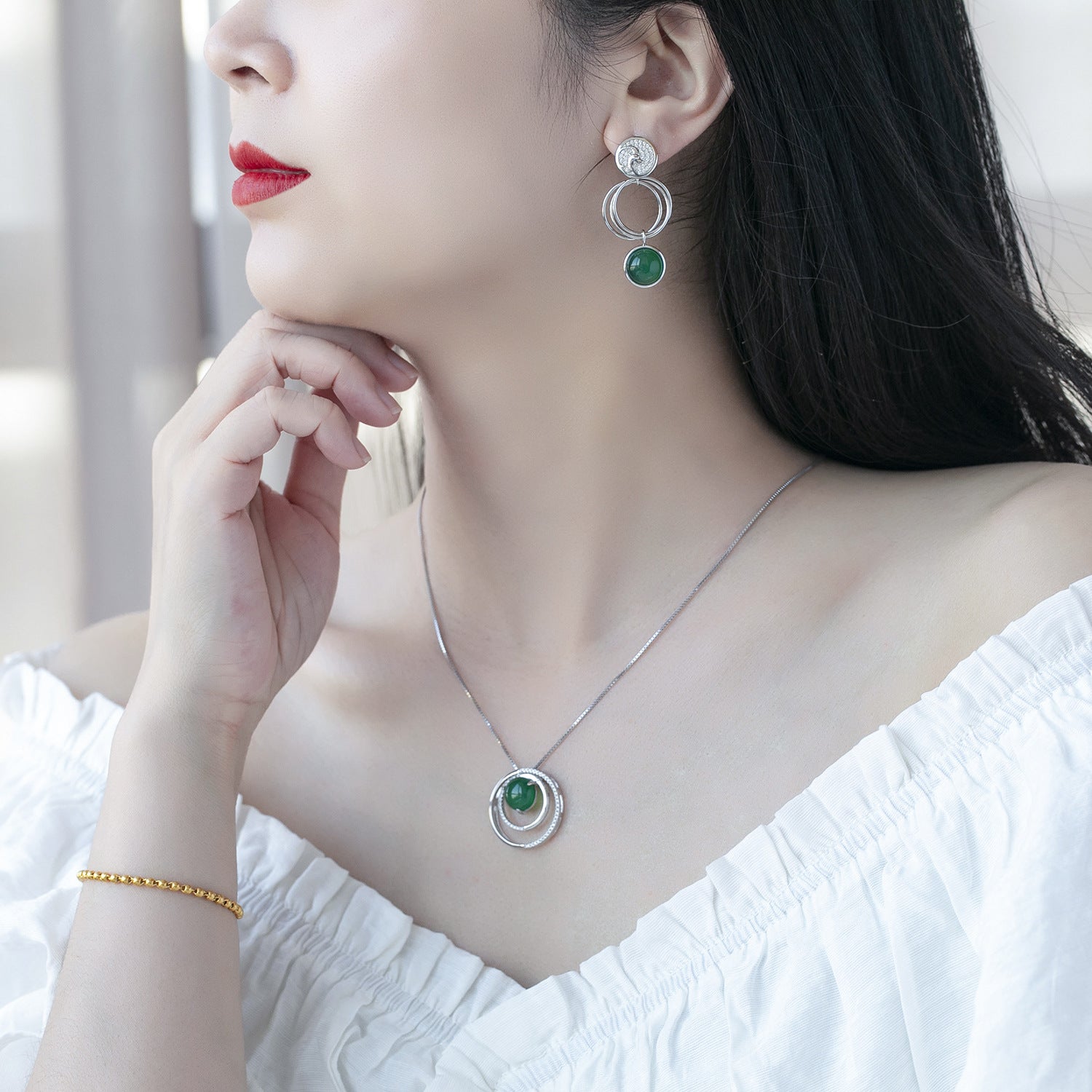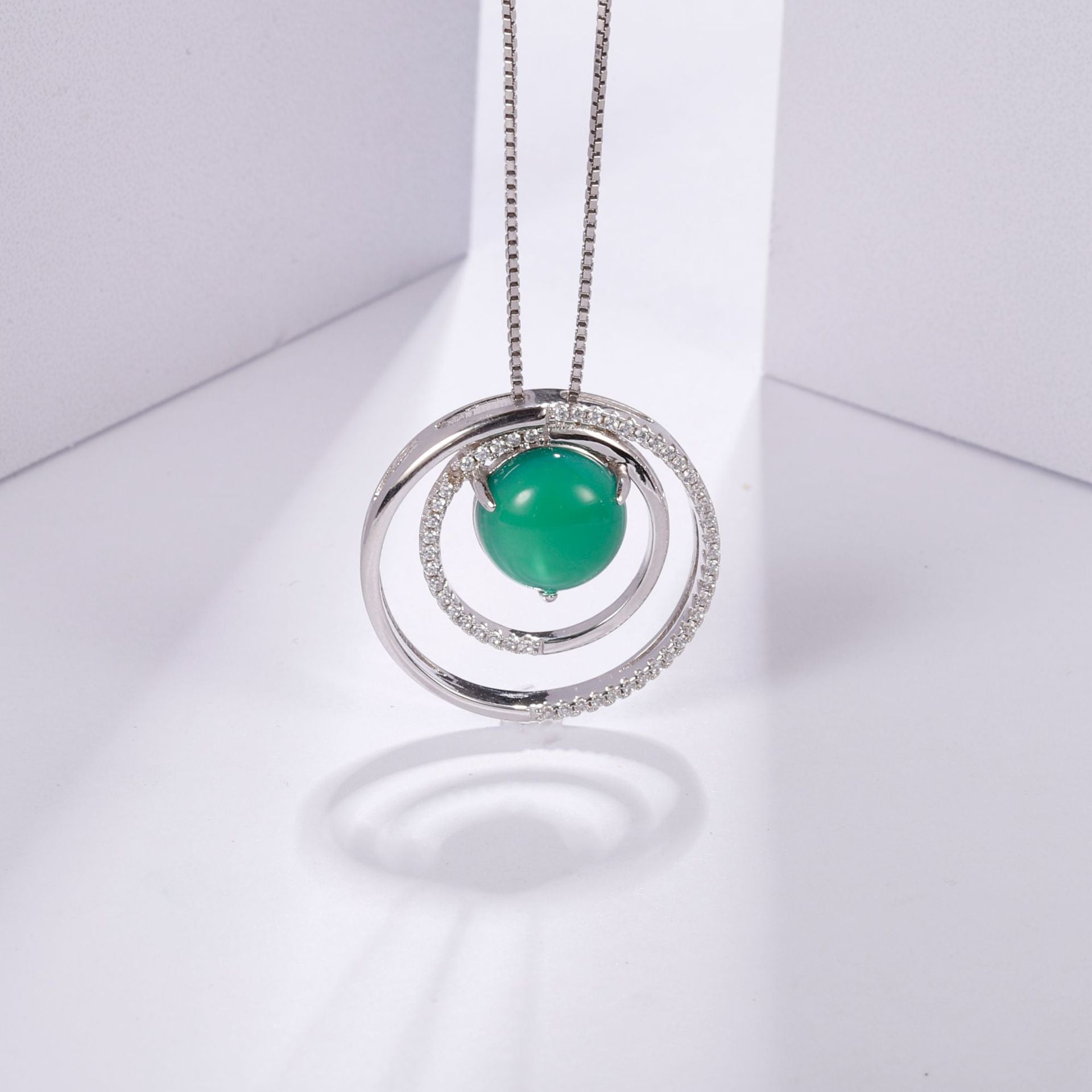 Designer High-End Natural Green Agate Pendant Minimalist Design s925Silver Color Gemstone Necklace Pendant