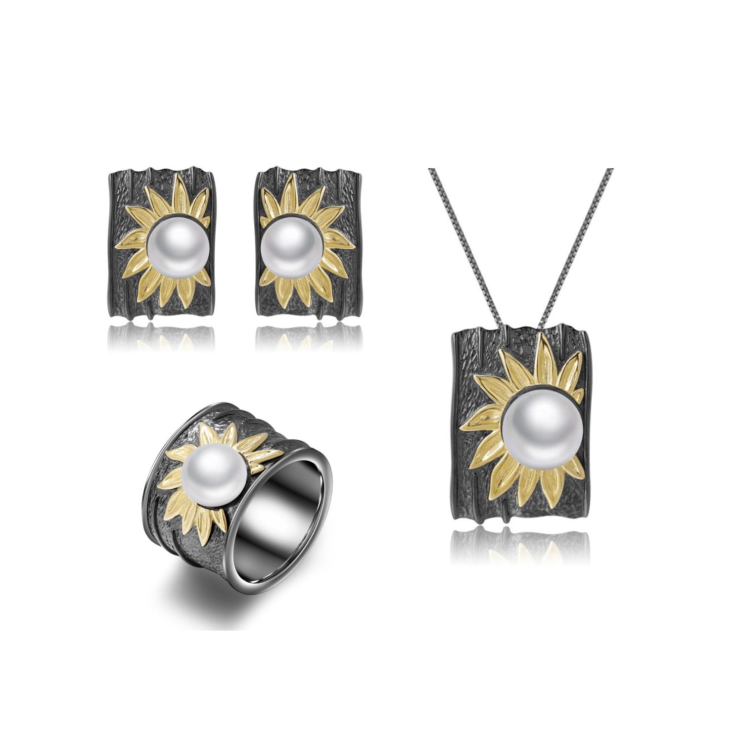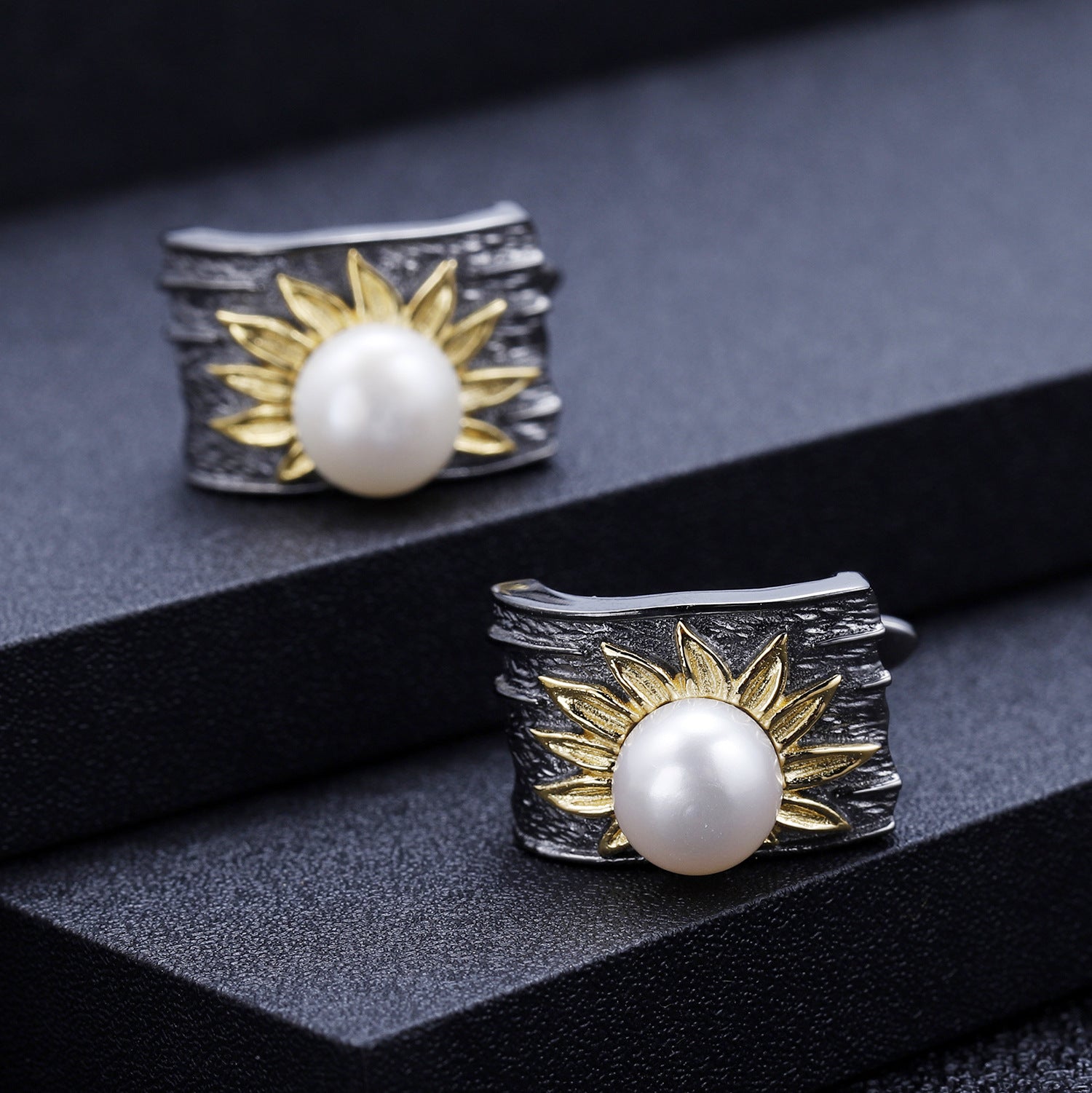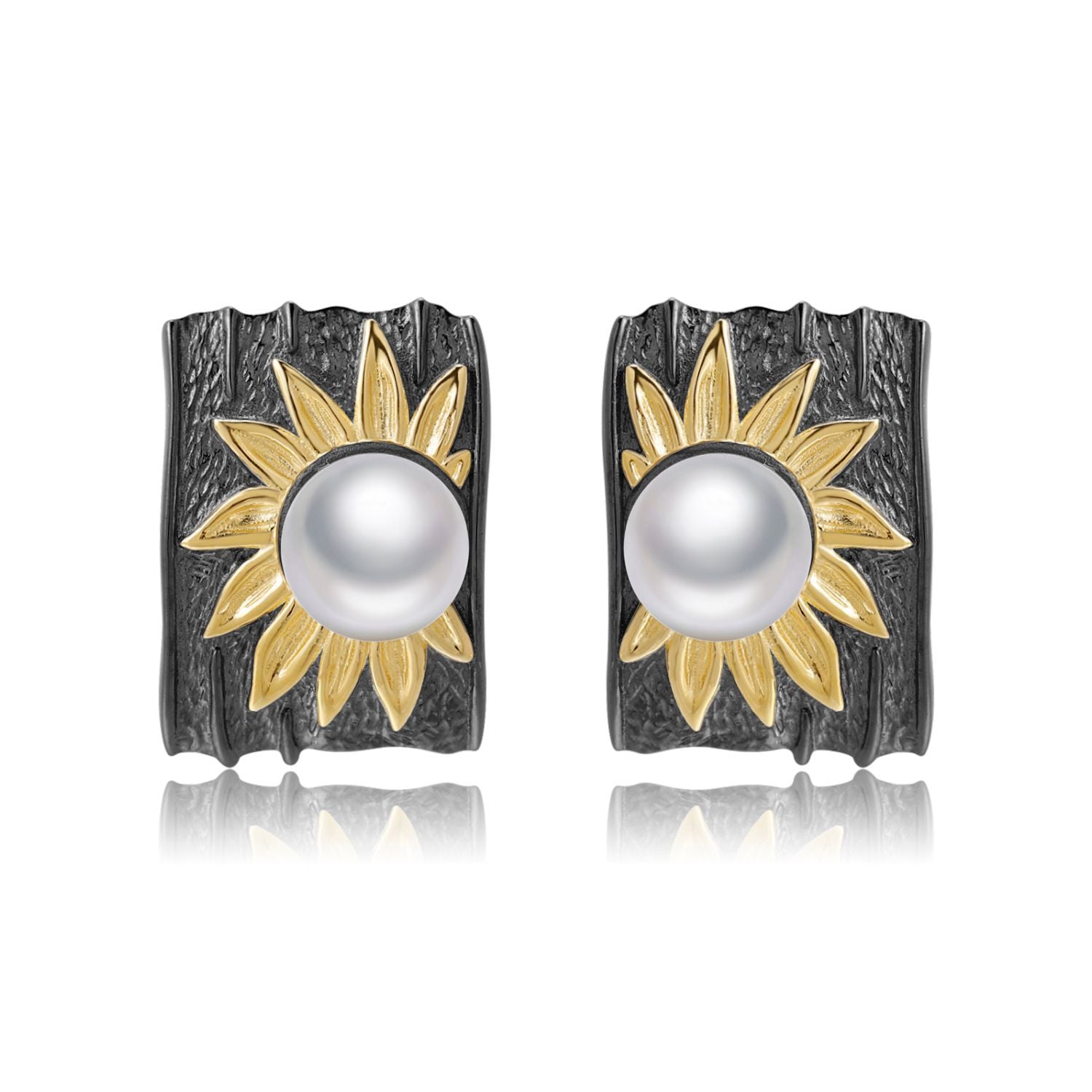 Designer High-End Pearl Earrings Natural Style Sunflower Flowers925Silver Natural Freshwater Pearl Stud Earrings
