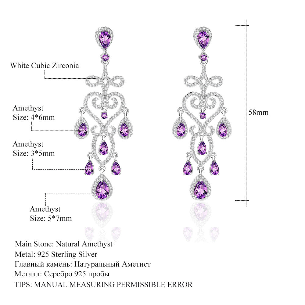 Designer Luxury Gemstone Earrings French Romantic High-end Feel s925Silver Natural Amethyst Earrings Drop Earrings