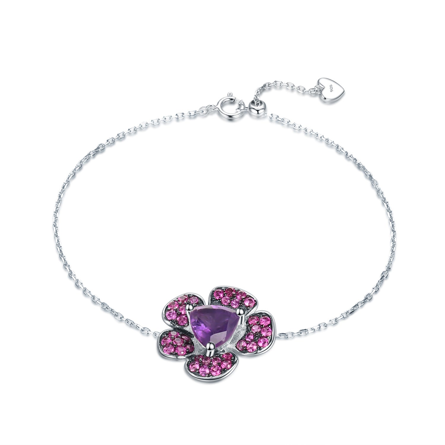 Designer Model Elegant and Personalized Gemstone Bracelet Natural Style Floral High-End Feel925Silver Natural Amethyst Bracelet