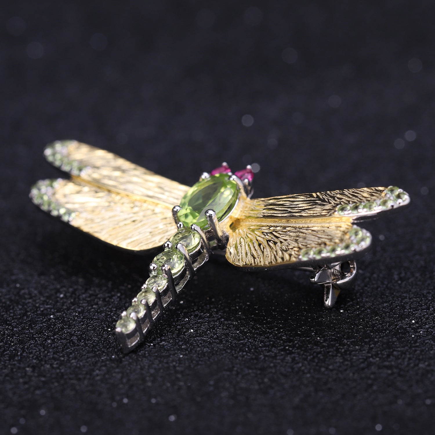 Designer Model Natural Colored Gems Brooch Dragonfly Design Classical Dignified s925Silver Natural Garnet Brooch