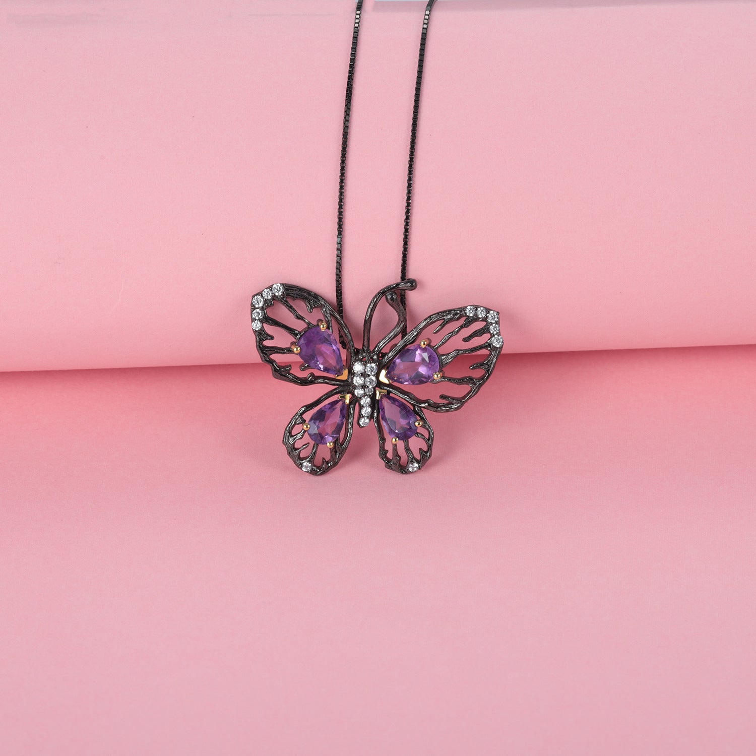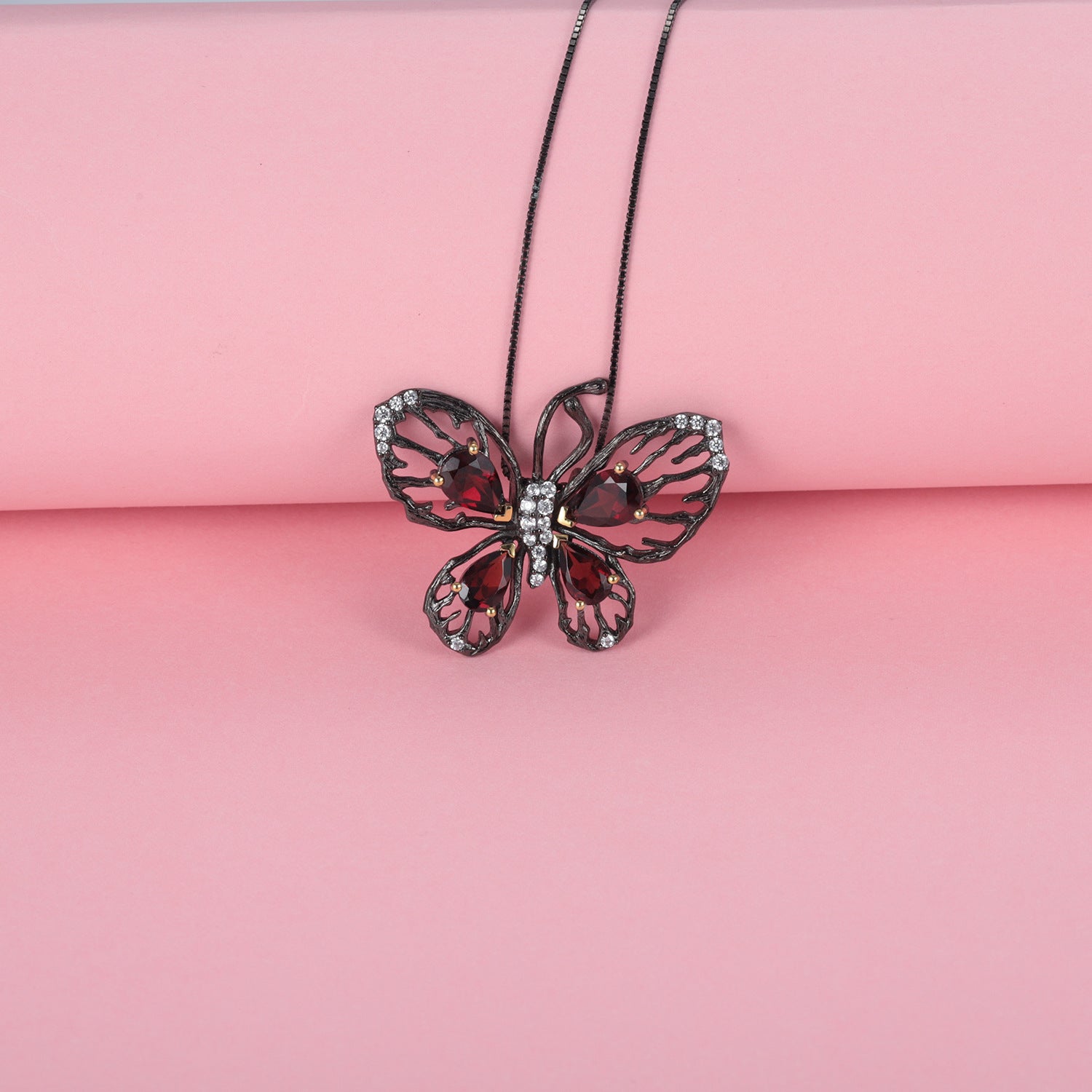 Designer Natural Garnet Butterfly Pendant Luxurious High-end Feel925Silver Natural Gemstone Necklace Pendant
