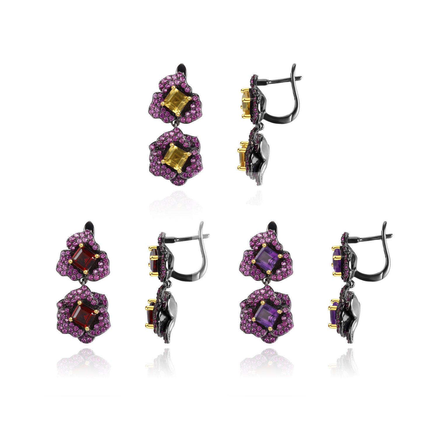 Designer Natural Gemstone Earrings Natural Style Floral Series Russian Luxury s925Silver Amethyst Earrings
