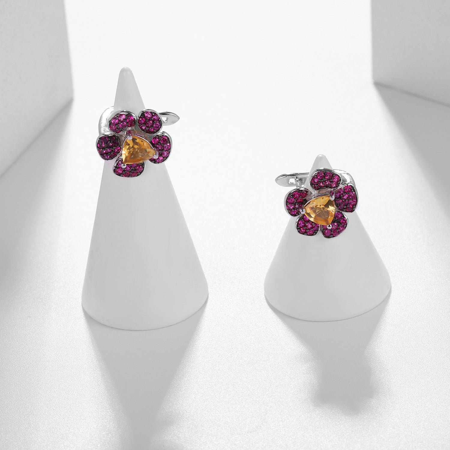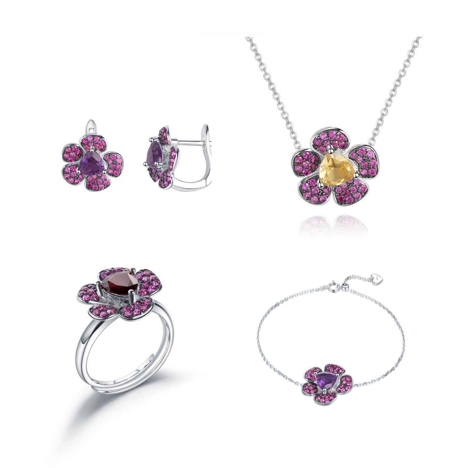 Designer Natural Gemstone Earrings with Natural Floral Style ins Wind s925Silver Amethyst Stud Earrings