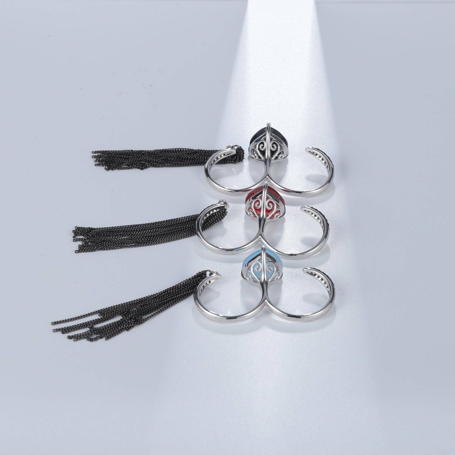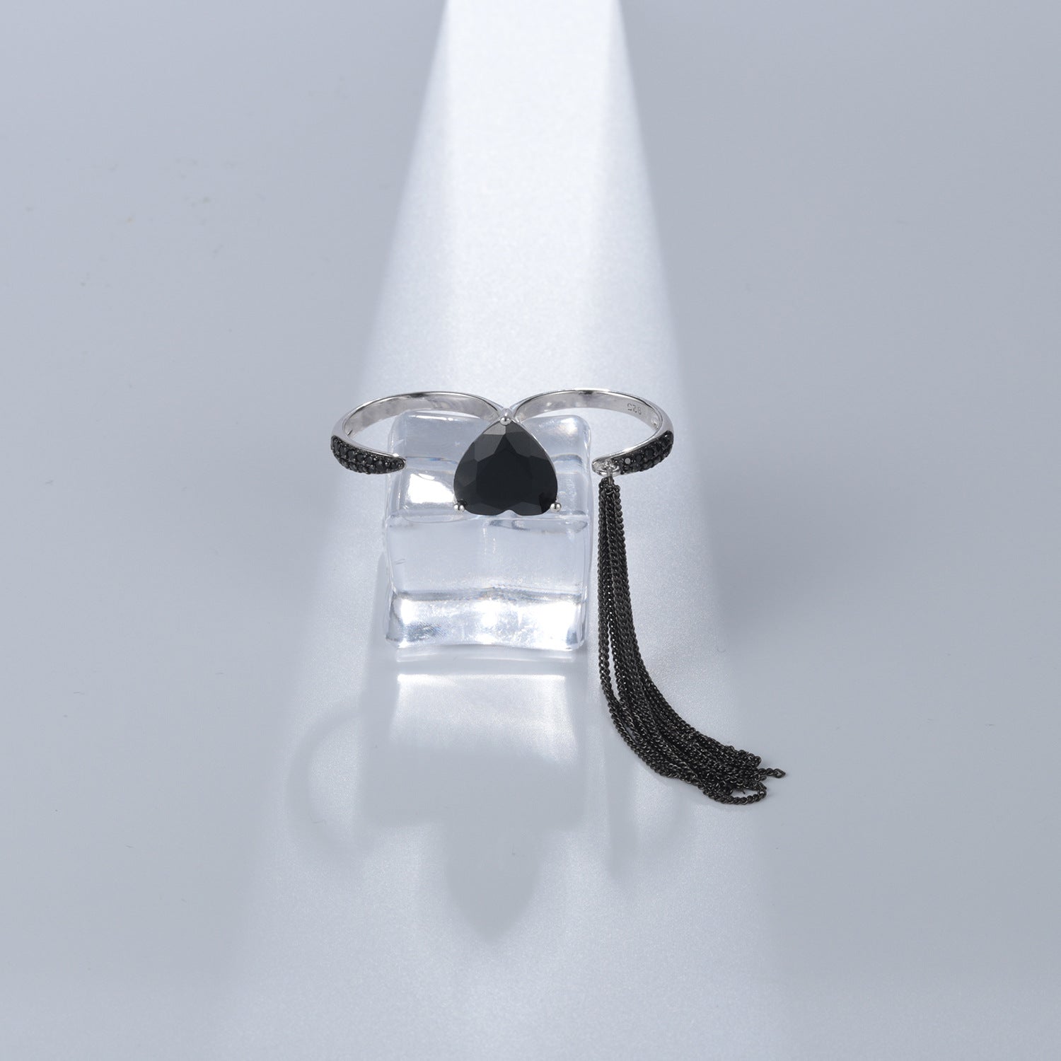 Designer Natural Heart Gemstone Ring with Tassel Design Unique and High-end Design925Silver and Black Onyx Ring
