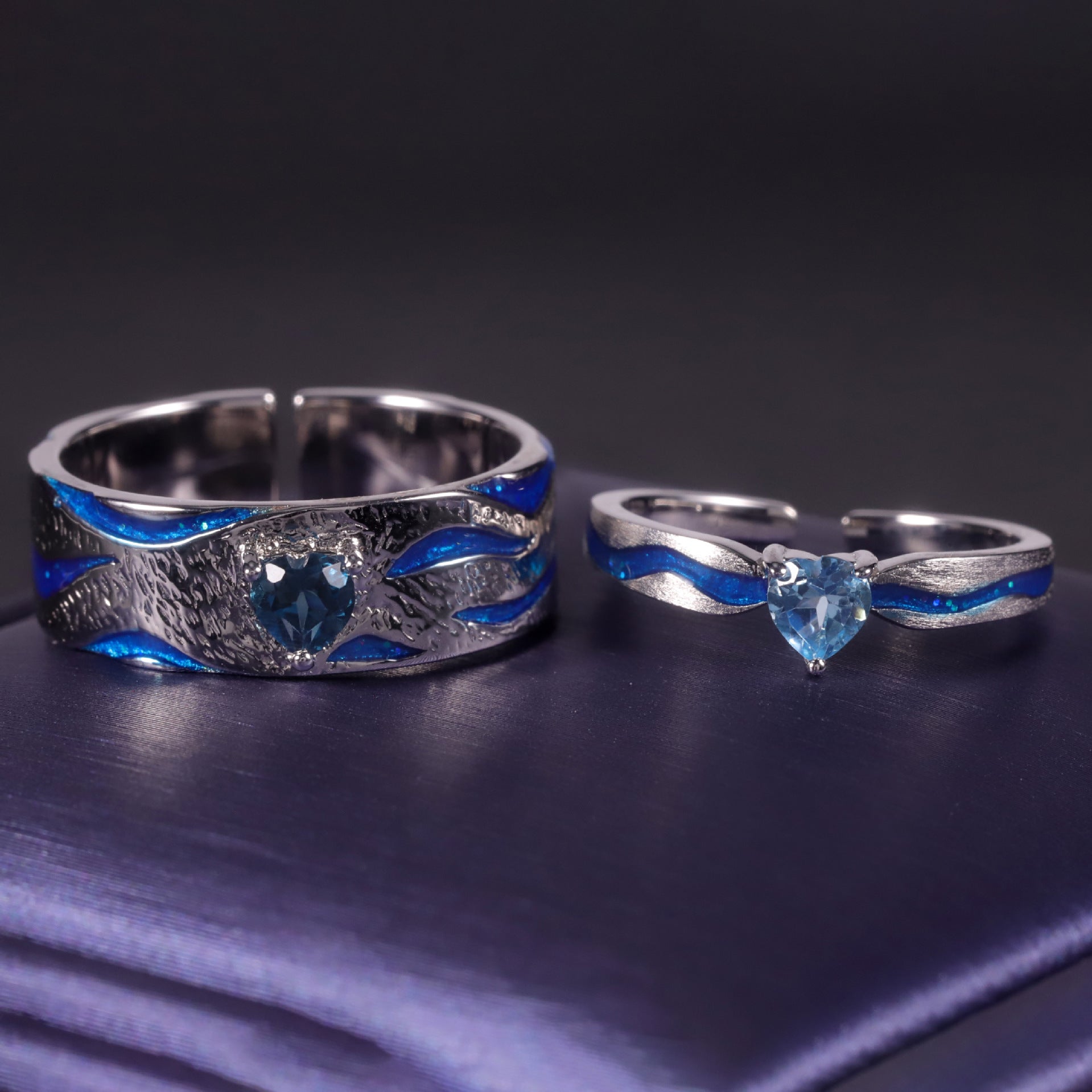 Designer Open Couple Rings Ocean Heart Natural Style Design s925Silver Natural Topaz Ring