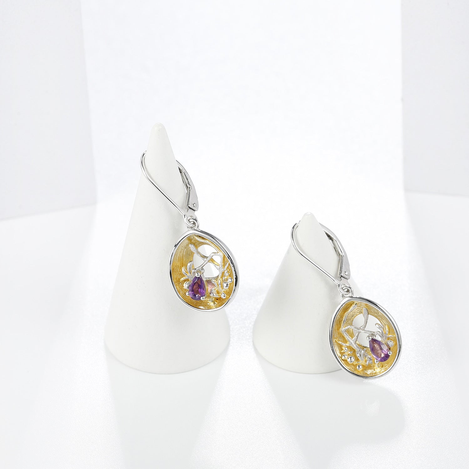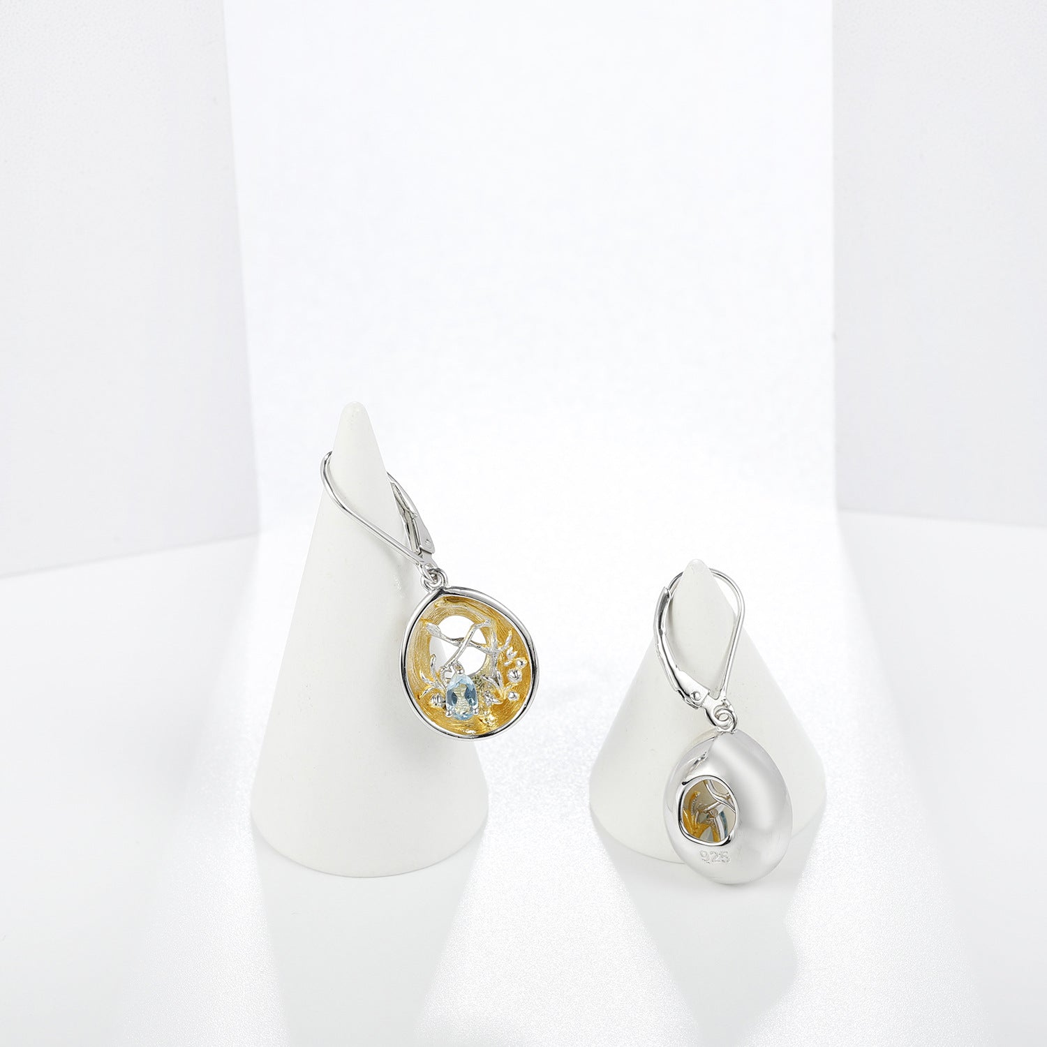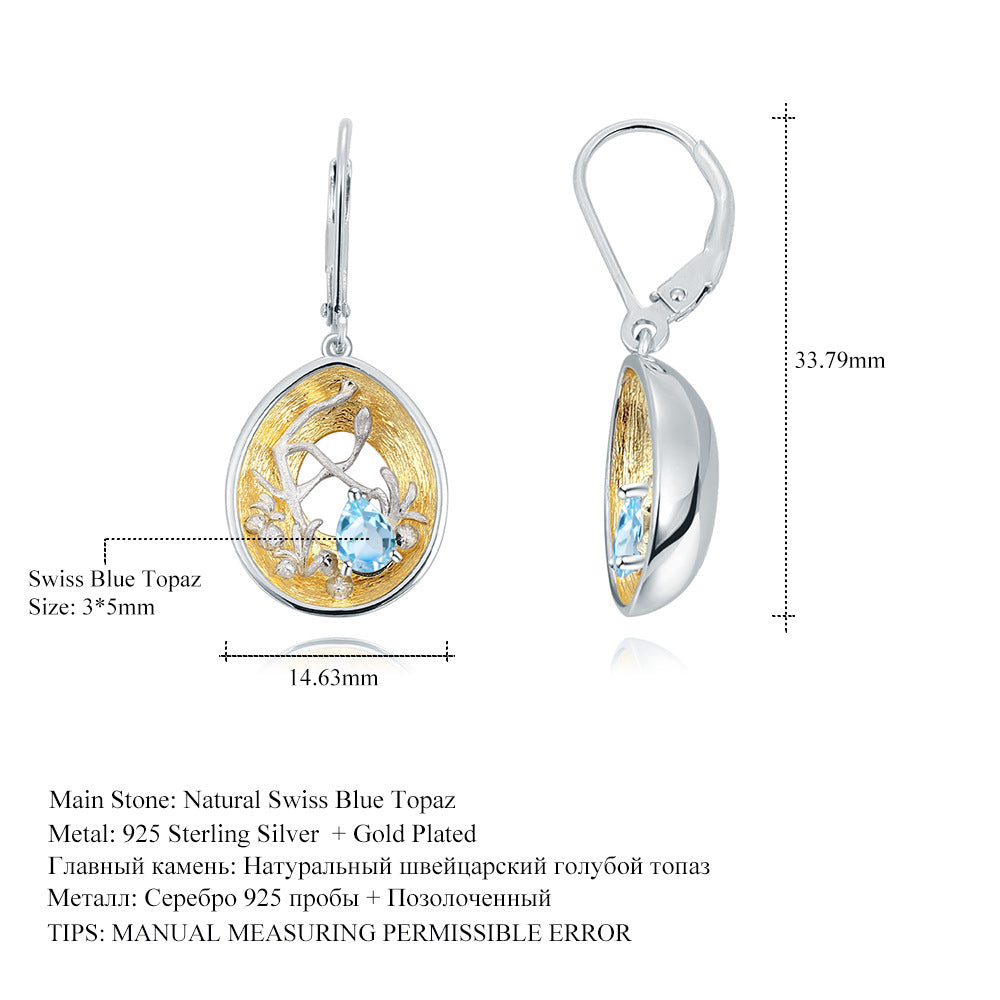 Designer Style High-End Gemstone Earrings with Unique Design s925Silver Inlaid Natural Topaz Stud Earrings