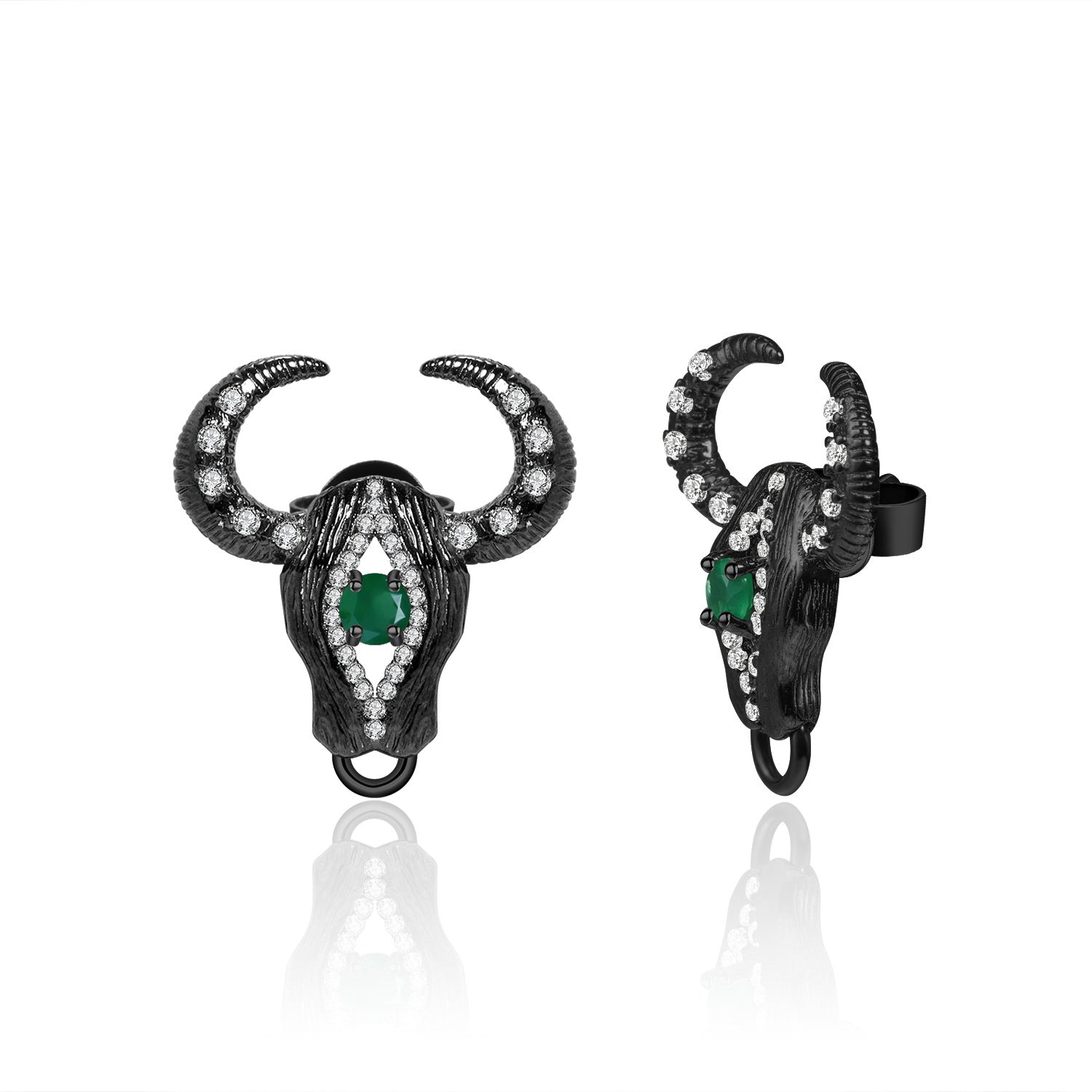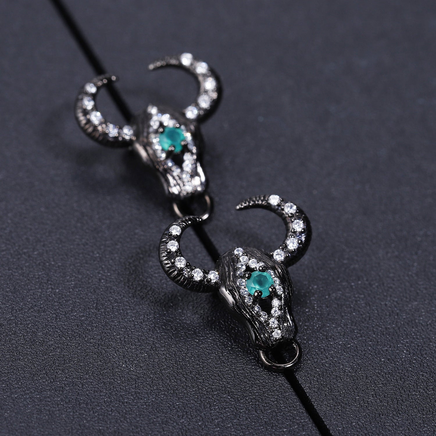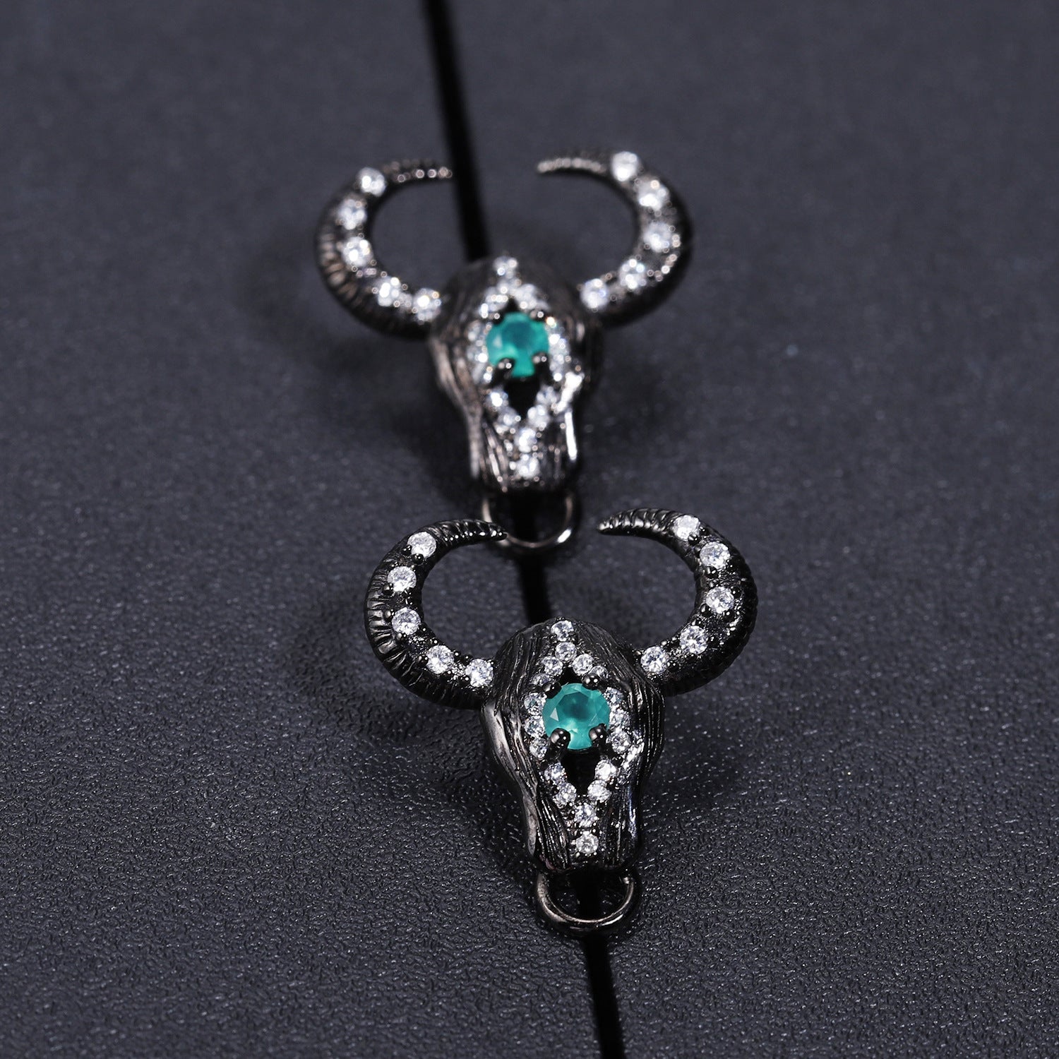 Designer Style Shan Hai Jing Bull Head Earrings Dark Retro Style High-end Feel s925Silver Green Agate Stud Earrings
