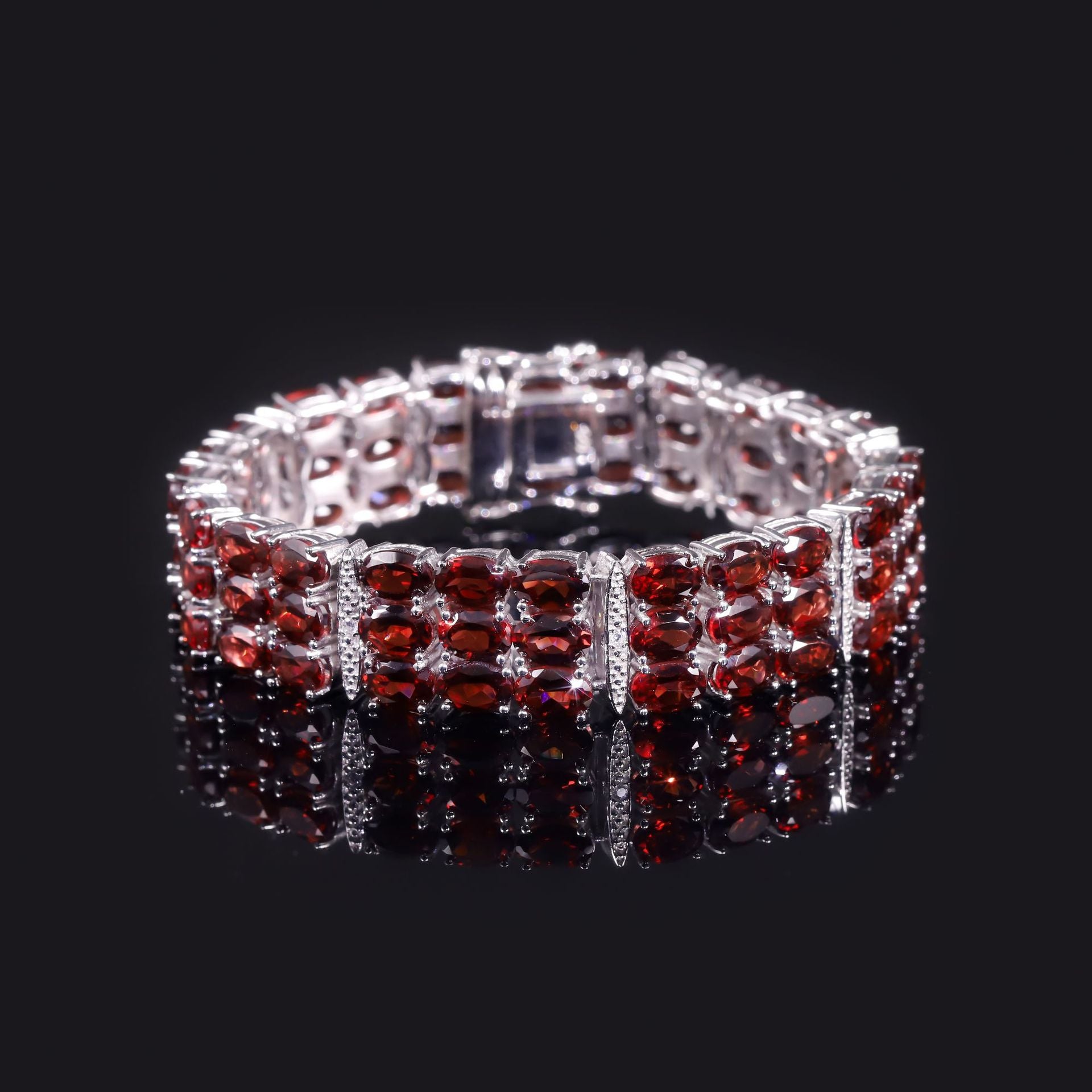 Elegant graceful s925Sterling Silver Inlaid Natural Garnet Bracelet Three Rows Heavy Craft Luxurious Gemstone Bracelet for Women