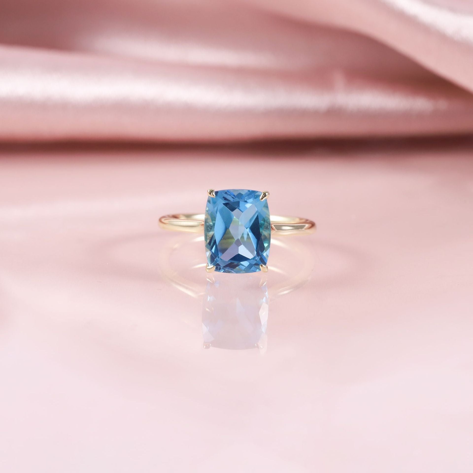 Large Gemstone Ring3Carat s925Sterling Silver Inlaid Natural Crystal Topaz Square Ring