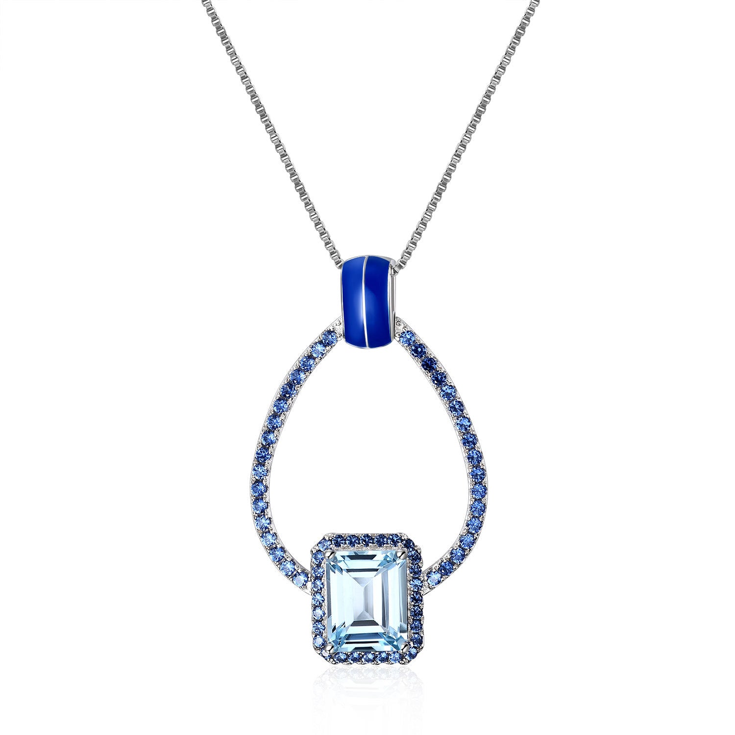 Vintage Style Jewelry Design Long Necklace s925Silver Inlaid Natural Gemstone Topaz Necklace Pendant