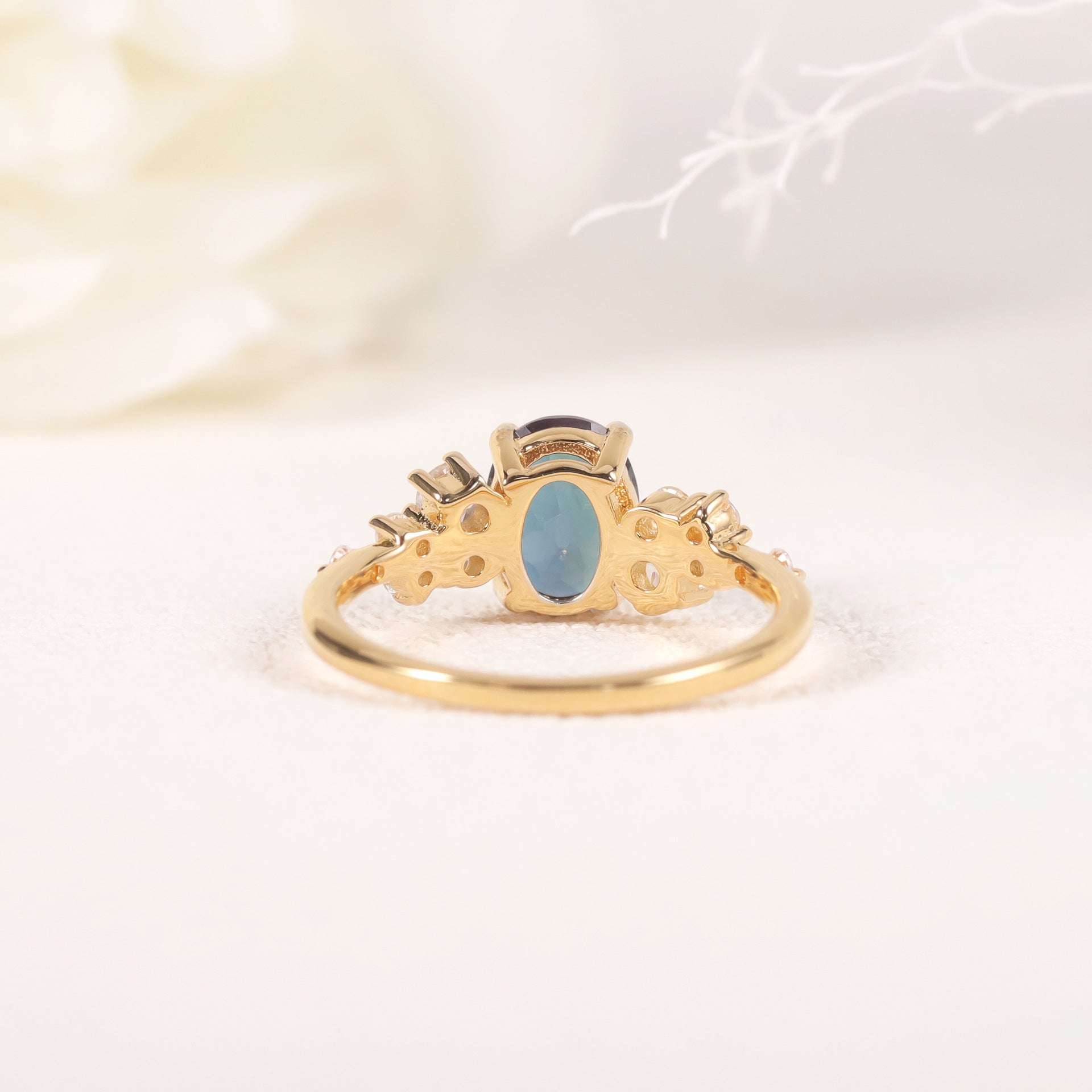 Design Sense Synthetic Alexandrite Ring s925Silver plating18k Gold Inlaid Opal Ring New Model
