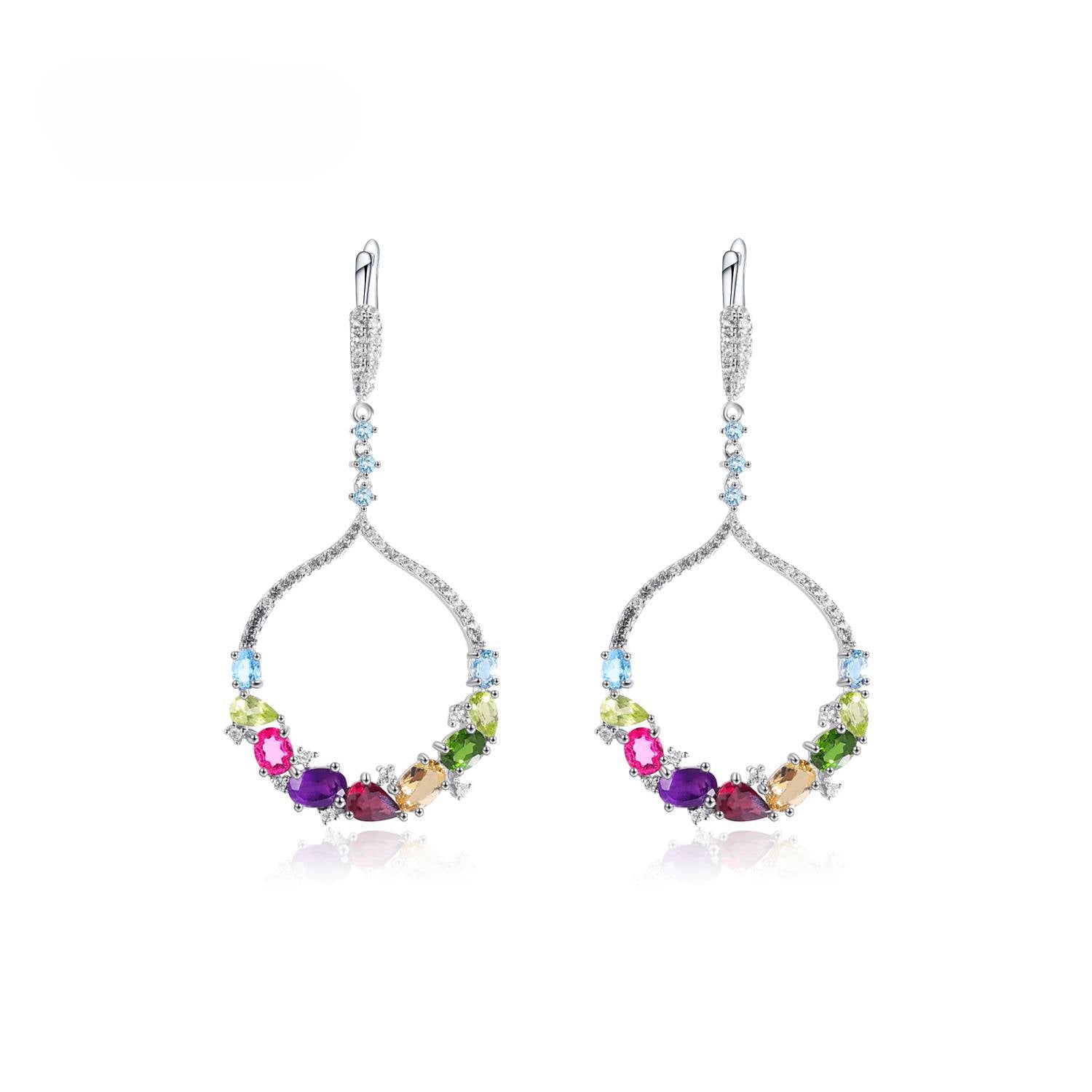Exaggerated High-End Design Earrings Colorful Gemstone Earrings Natural Topaz High Aesthetic Value925Sterling Silver Earrings