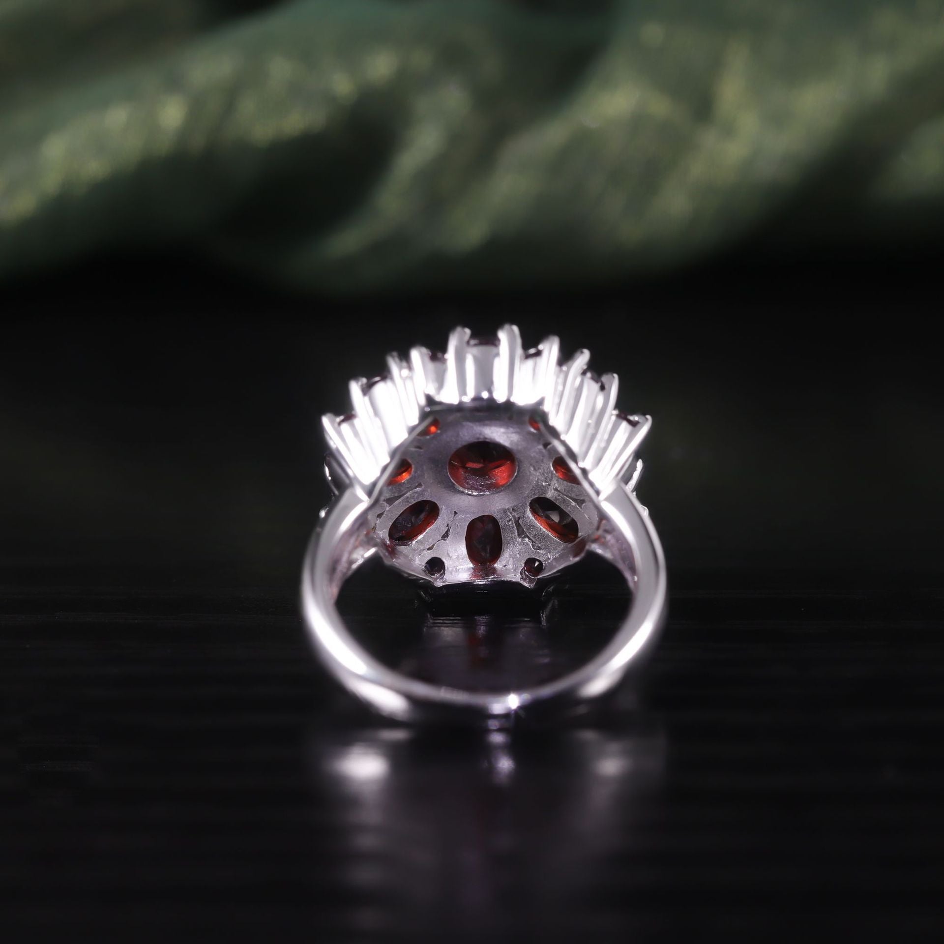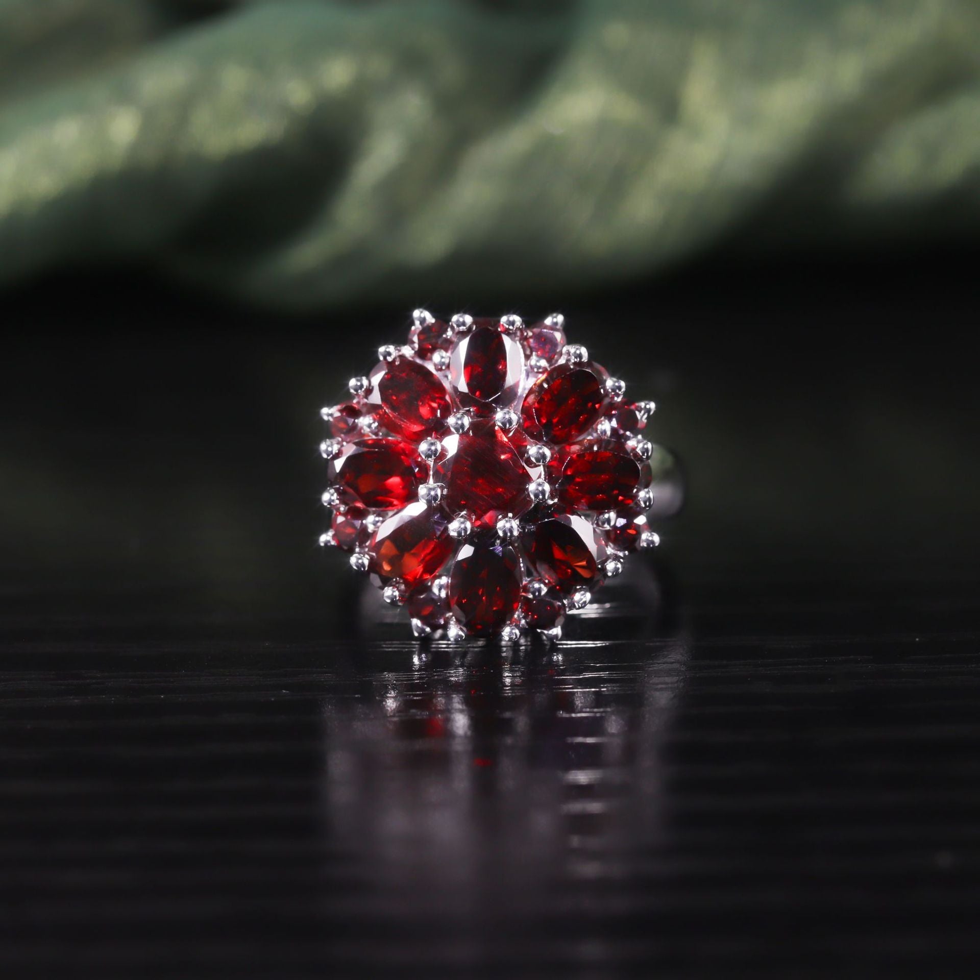 Exaggerated Luxurious Ring s925Sterling Silver Topaz Gemstone Ring Natural Garnet Ring Flower