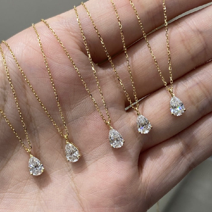 Fashion18k Lab-grown Diamond Pendant0.5Carat Pear-Shaped Water Drop Real Diamond Gold Necklace Simple Single Diamond k Gold accessories