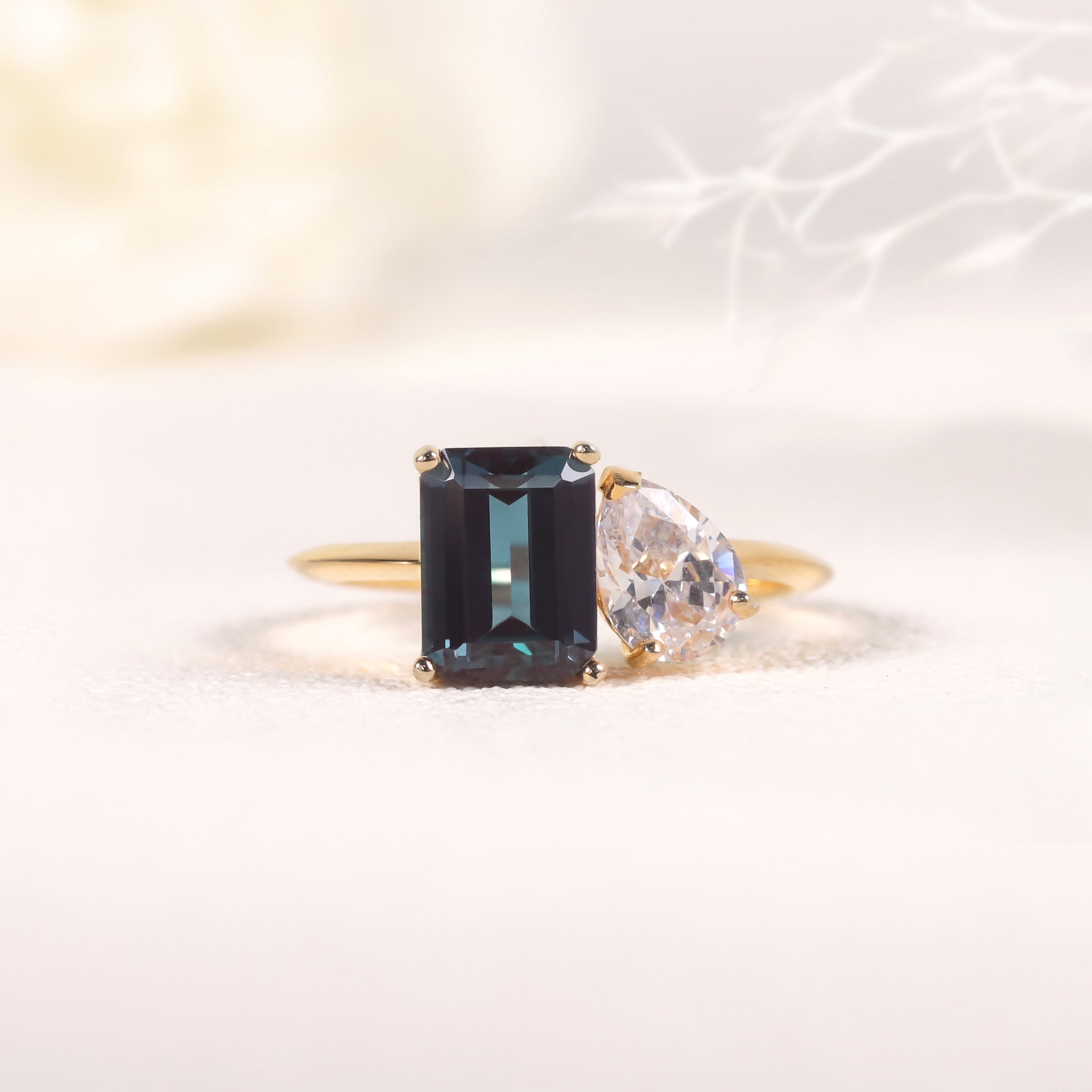 Fashionable and Unique Rings s925Sterling Silver Gold Plated Lab Color Changing Sapphire Blue Gemstone Ring