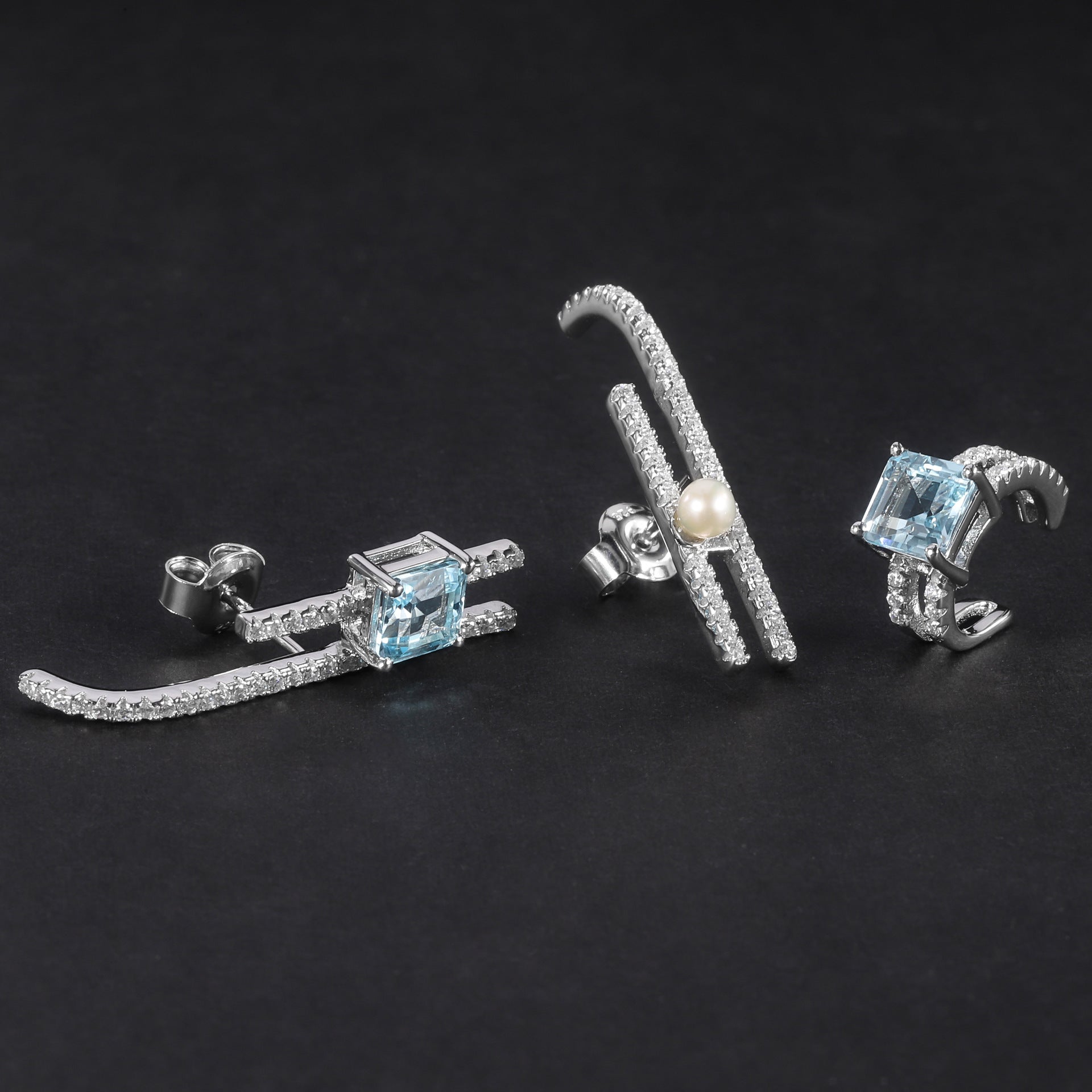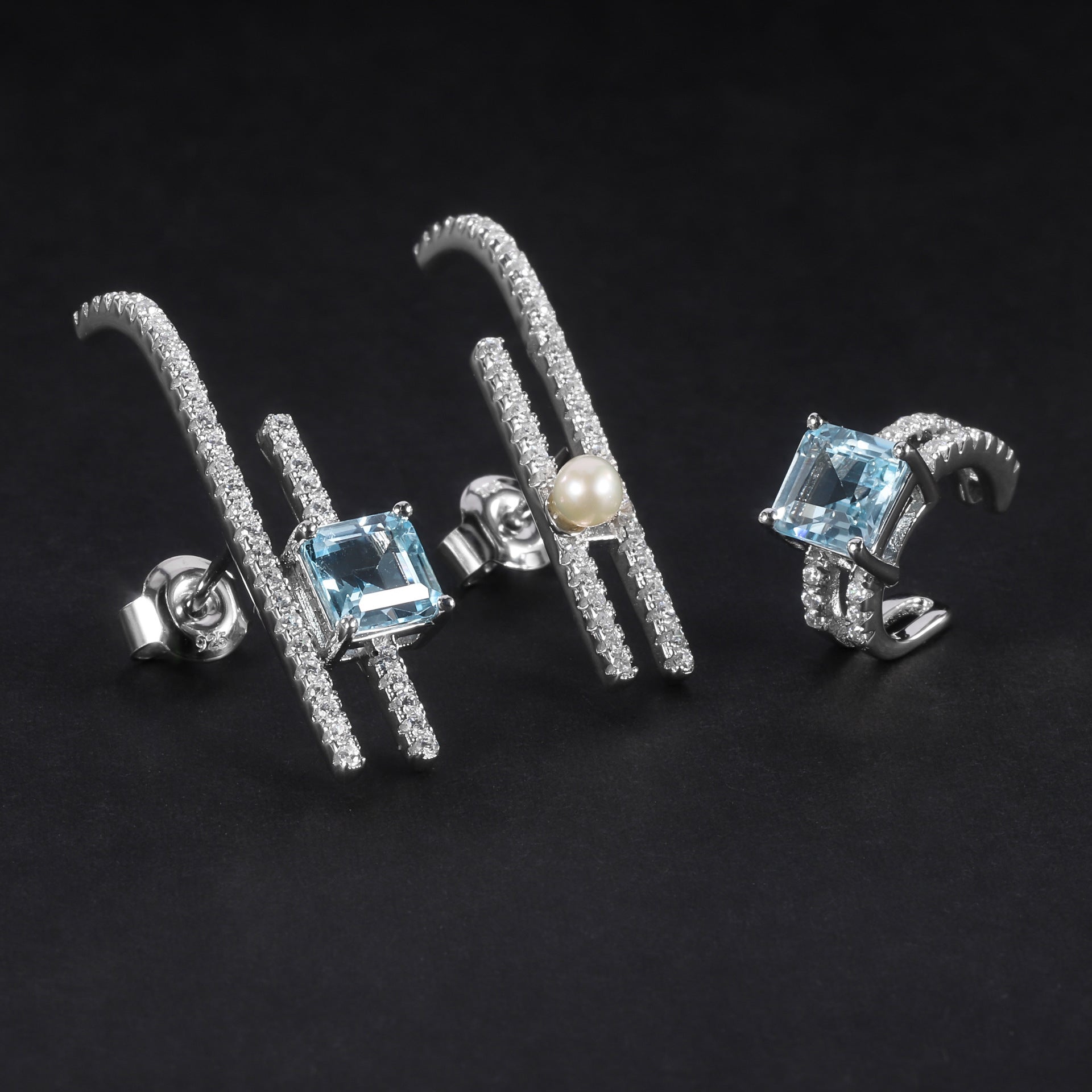 Fashionable Light Luxury Earring Three-Piece Set S925Silver Inlaid Natural Freshwater Pearl Matching Topaz Stud Earrings Ear Clips