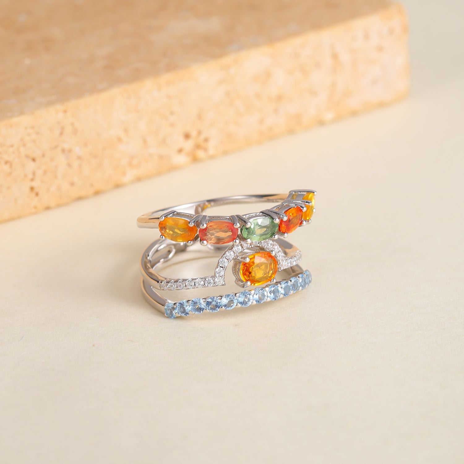 Fresh ins High-Quality Ring with Natural Colorful Sapphire S925Sterling Silver Open Ring New Style