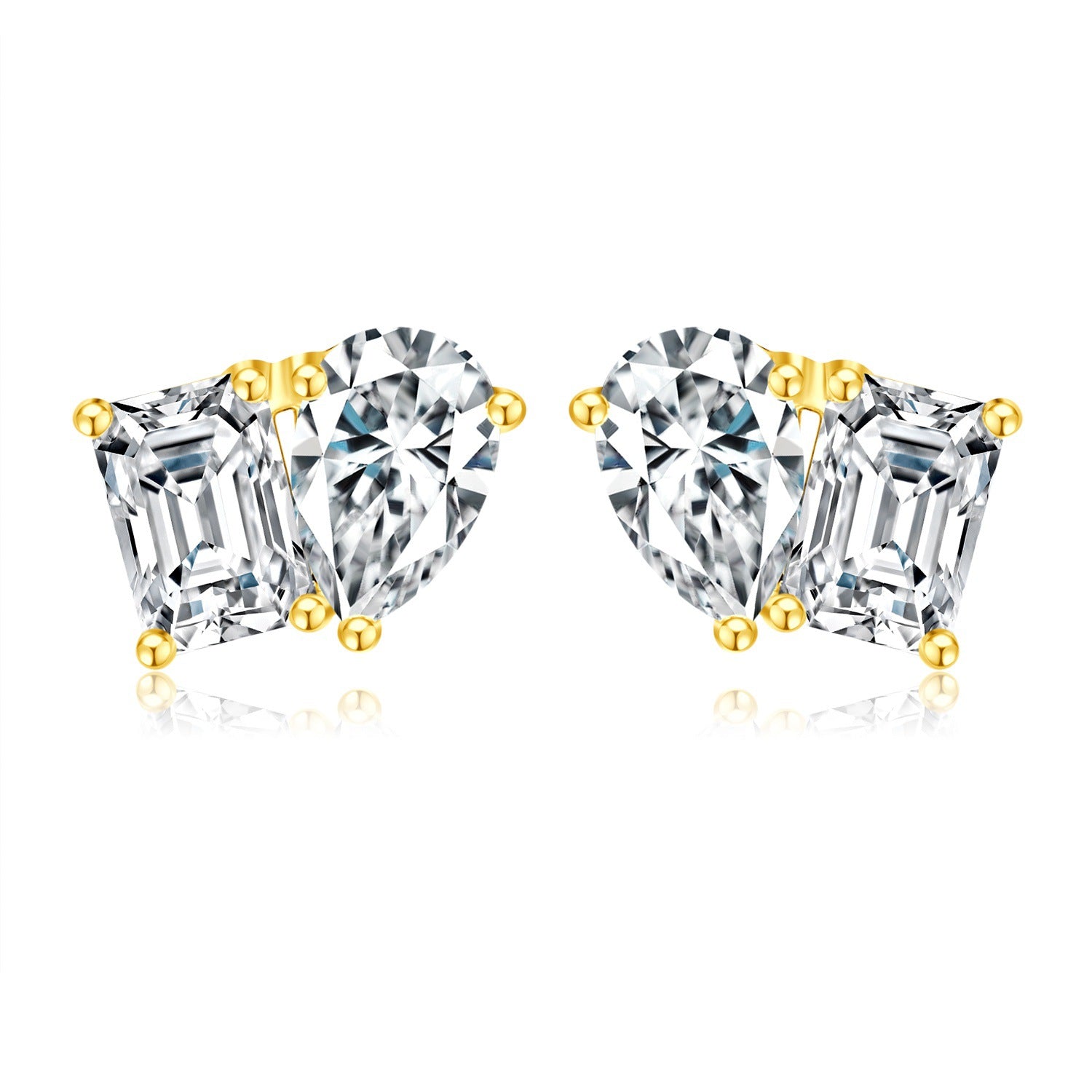 High-end Jewelry18k Gold Stud Earrings Inlaid with Cultivated Diamonds Trendy Y@M You and Me Gold Diamond Earrings for Women