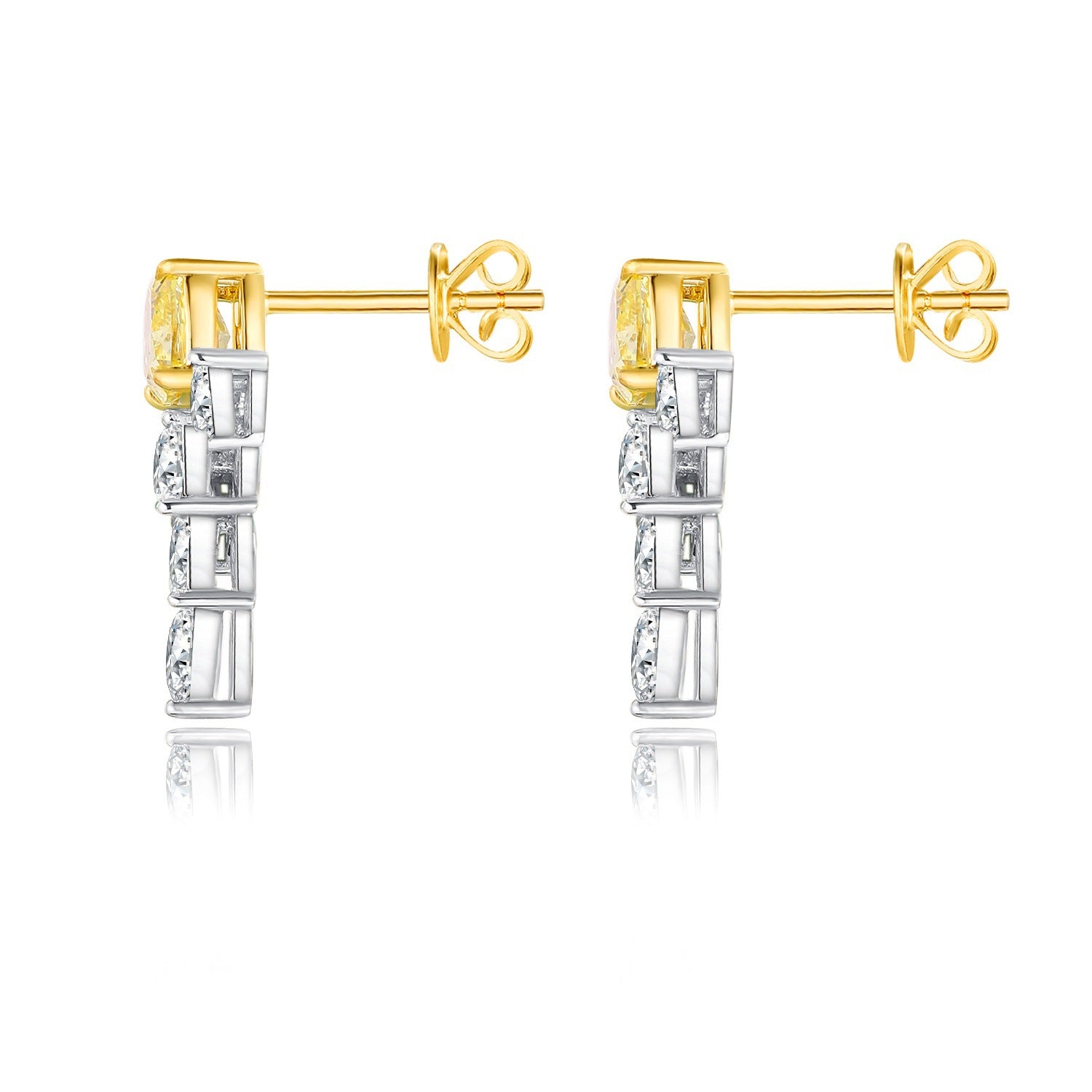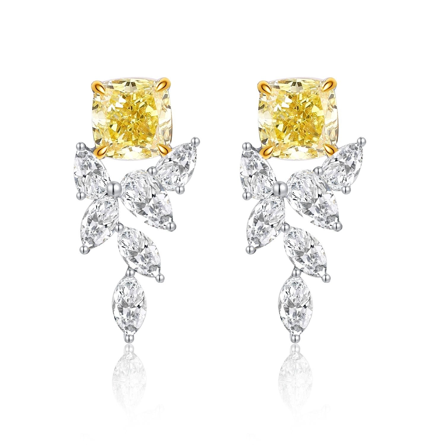 High-end Two-tone Cultivated Diamond Stud Earrings14k Gold Inlaid Real Diamond Earrings Lab-Grown Yellow Diamond Earrings