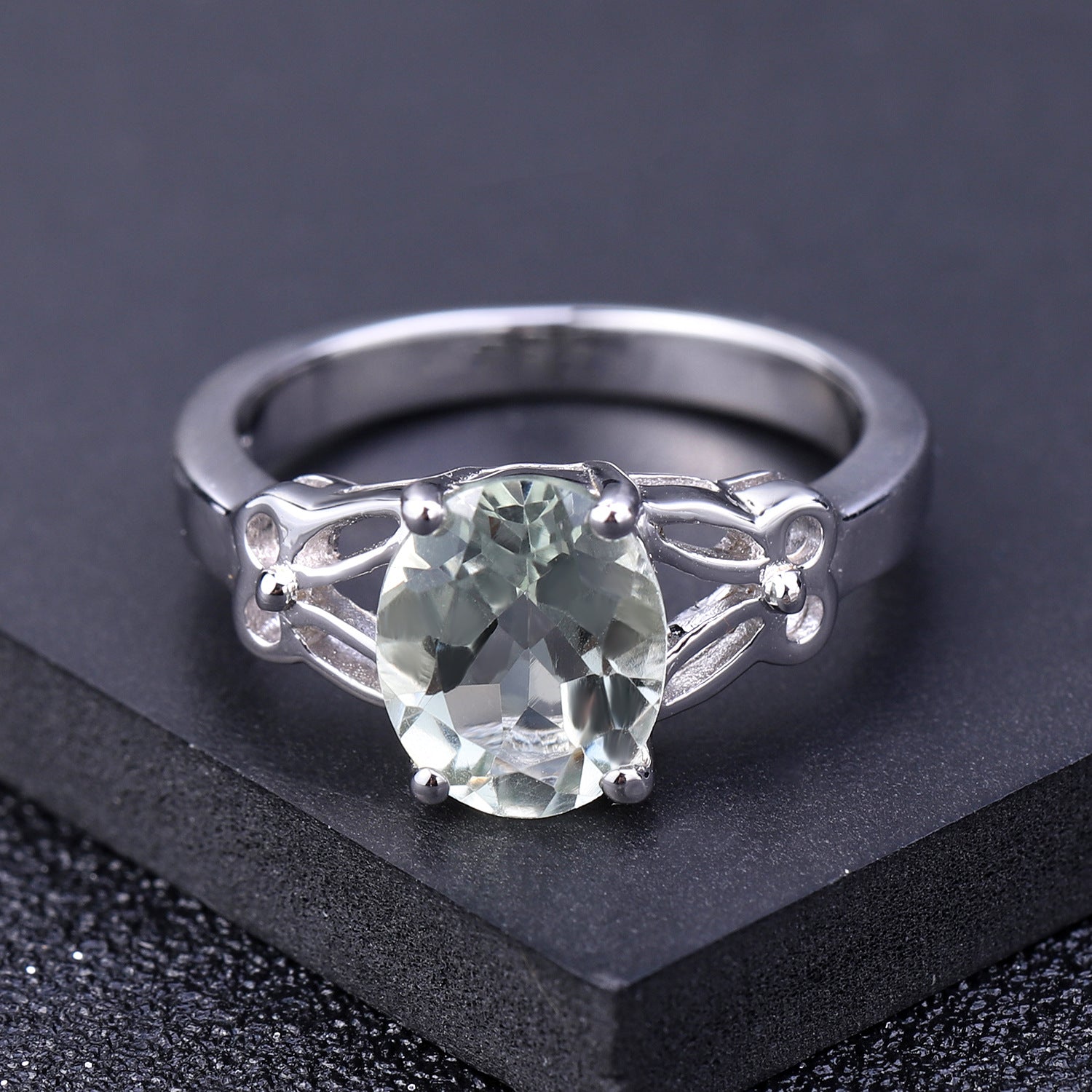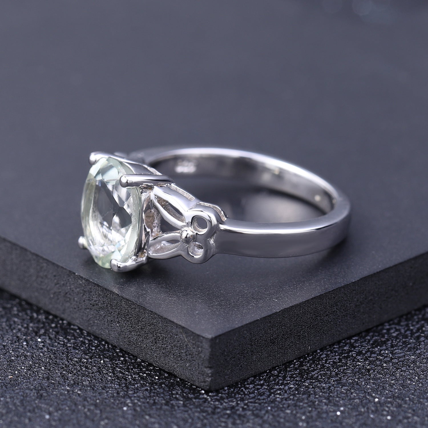 In-stock Wholesale Green Amethyst Gemstone Ring for Women Vintage Inlaid Natural Stone s925Silver Crystal Ring