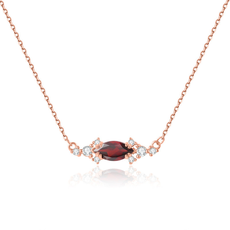 Independent Brand Necklace s925Sterling Silver Inlaid Garnet Marquise Lab Color-Changing Sapphire Necklace Personality