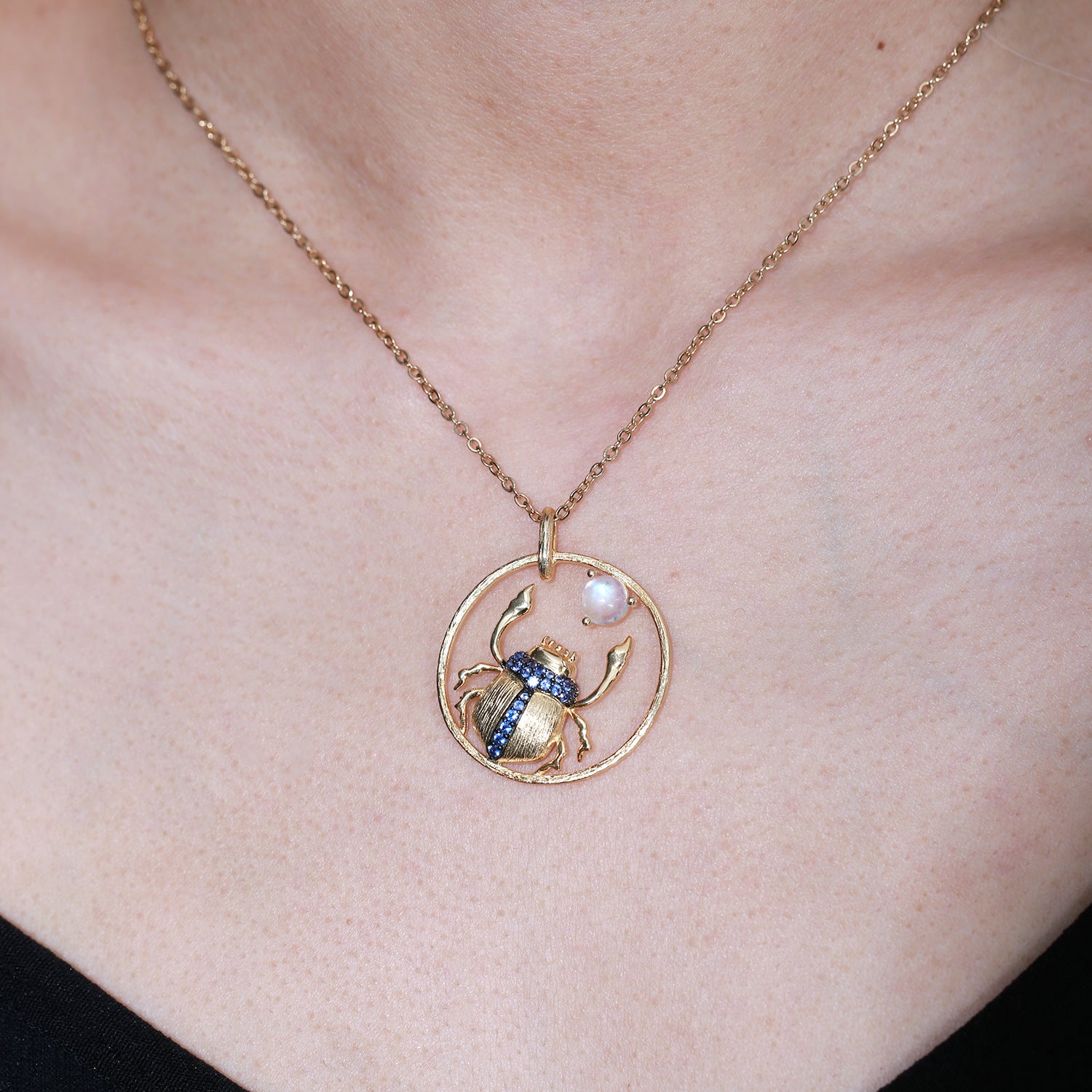 Independent Designer Natural Cream Blue Moonstone Pendant Insect s925Sterling Silver Gemstone Niche Design Necklace for Women