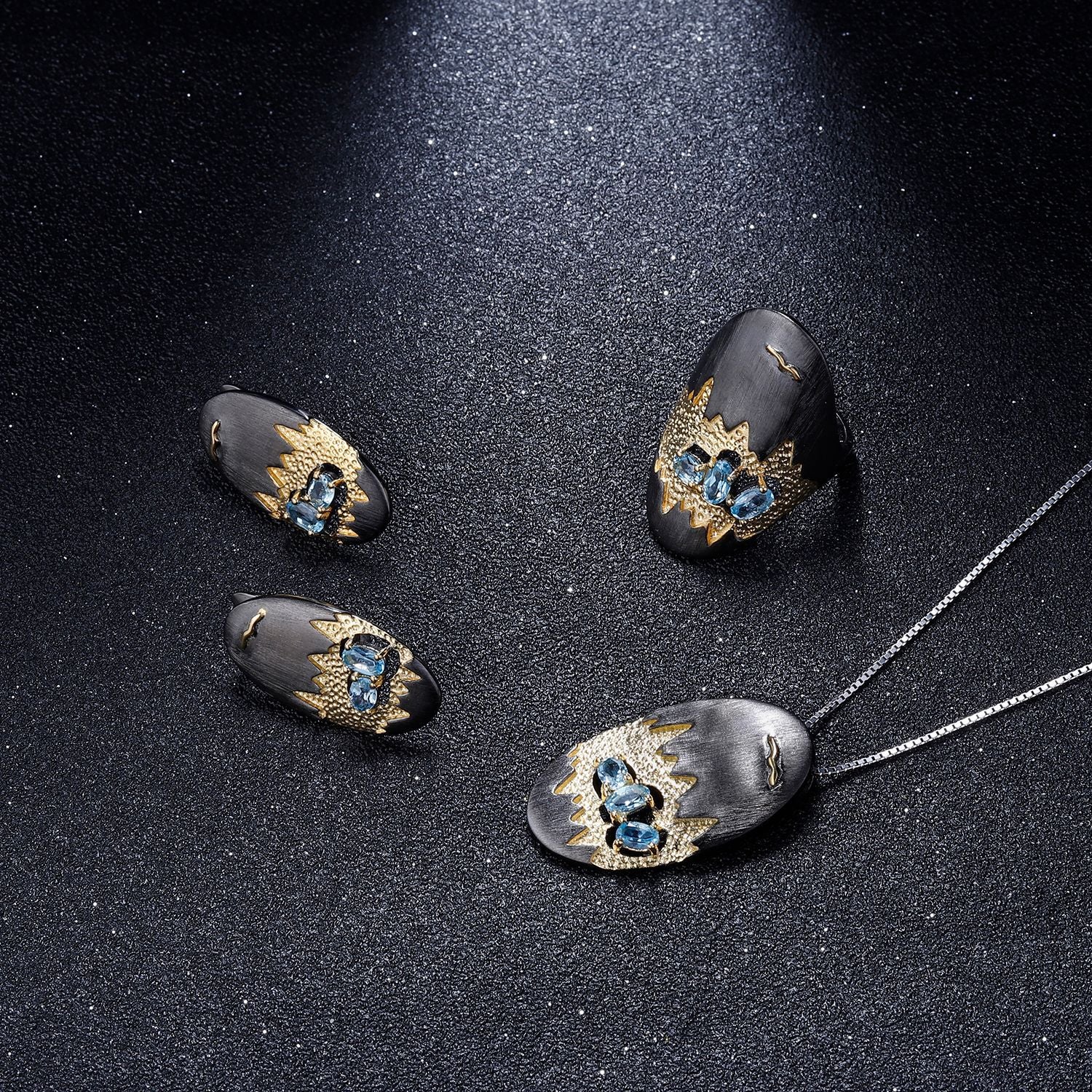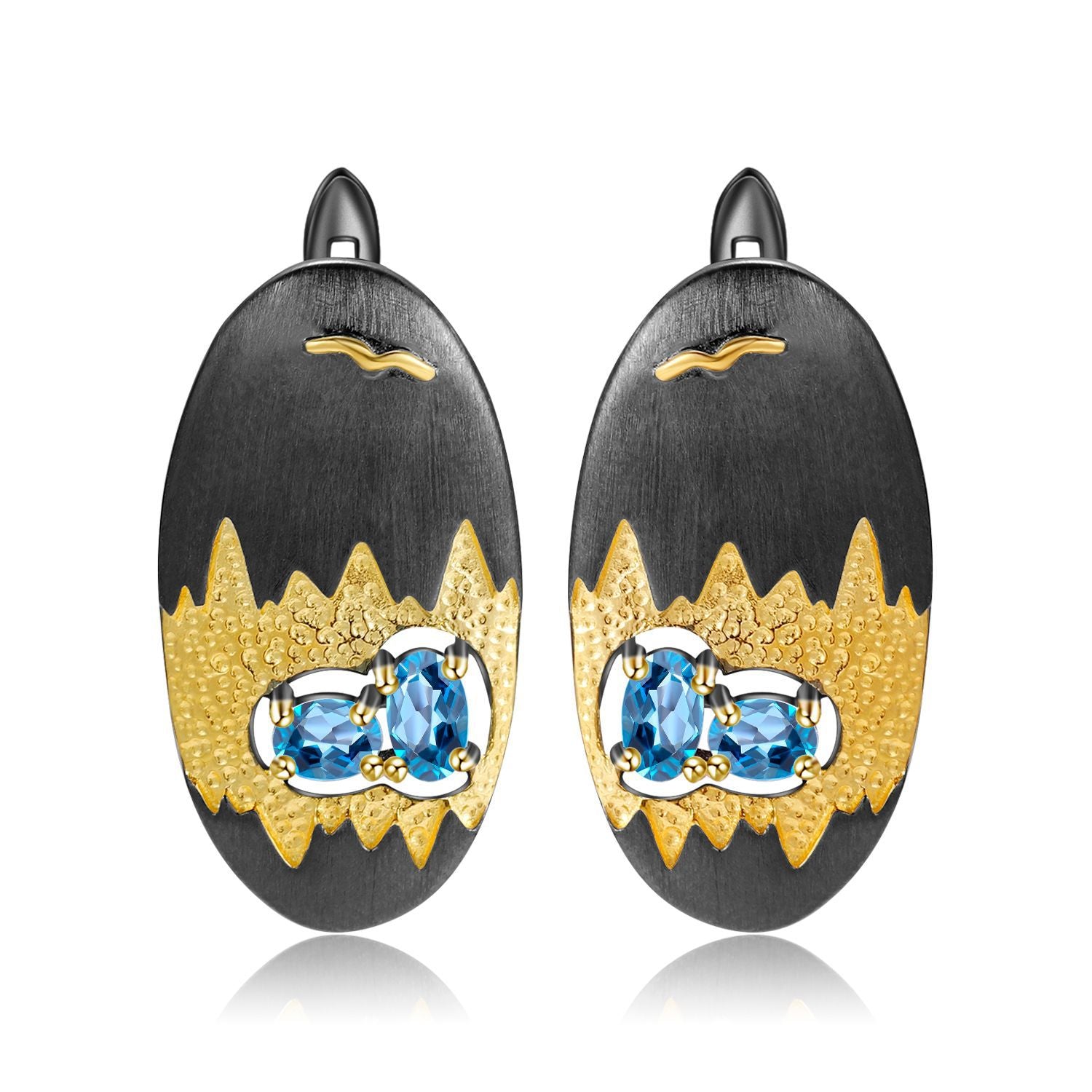 Italian Craft Designer Earrings Elegant Landscape Design925Silver Natural Topaz Stud Earrings