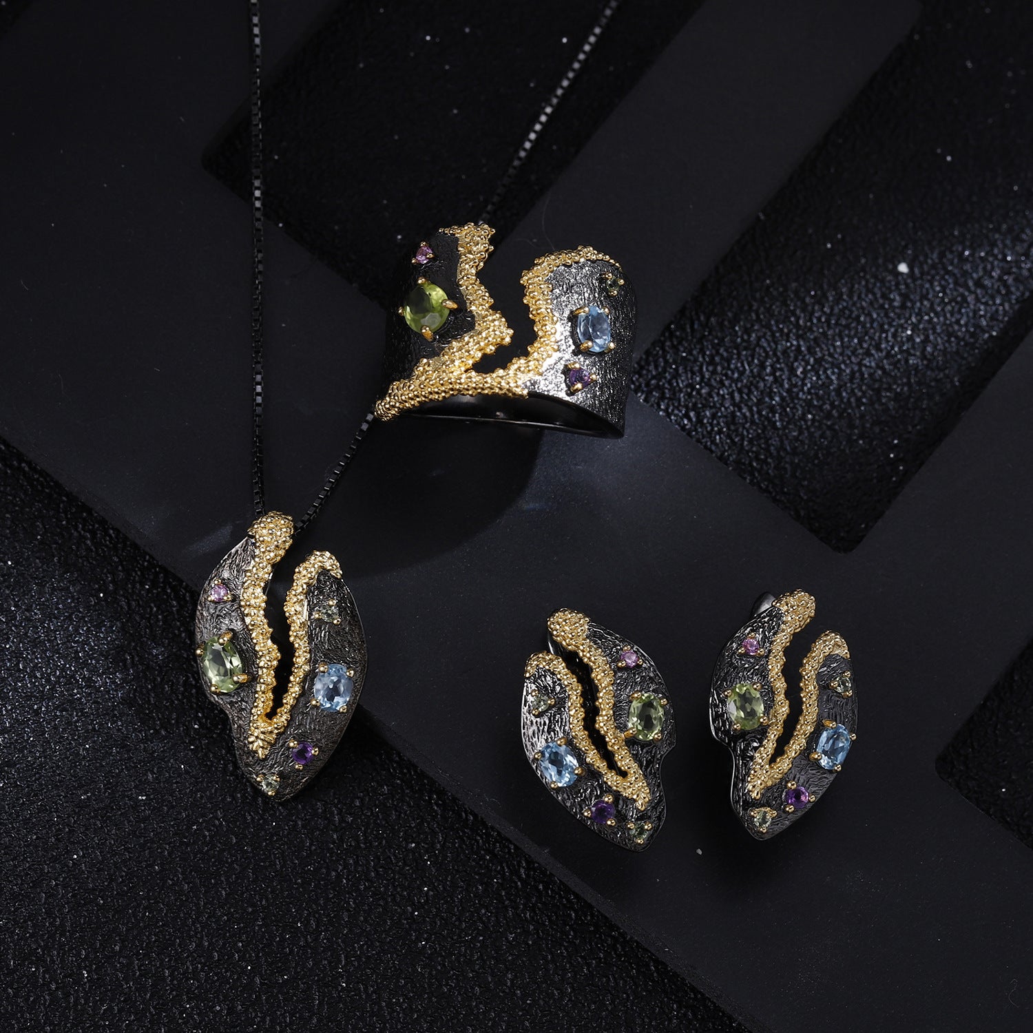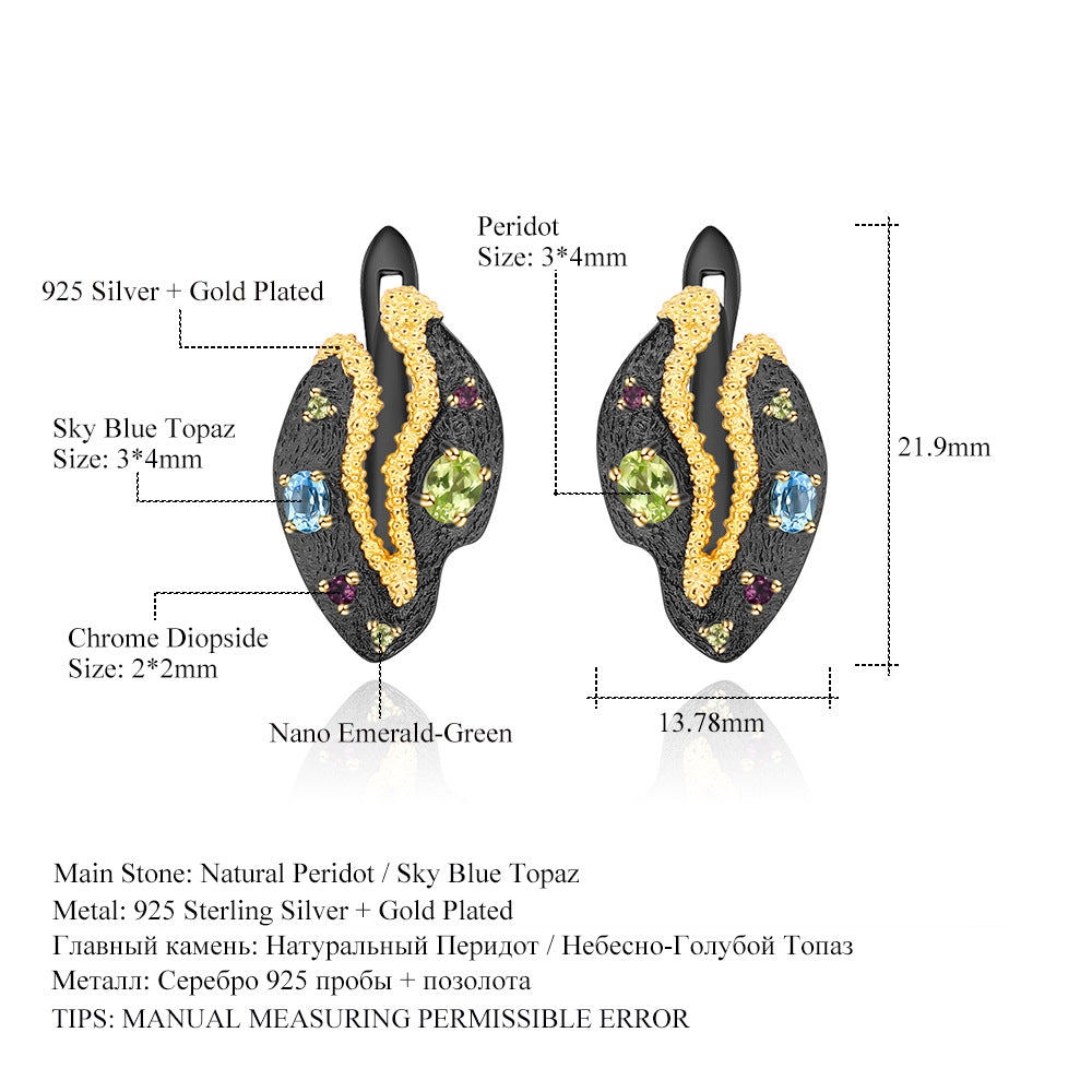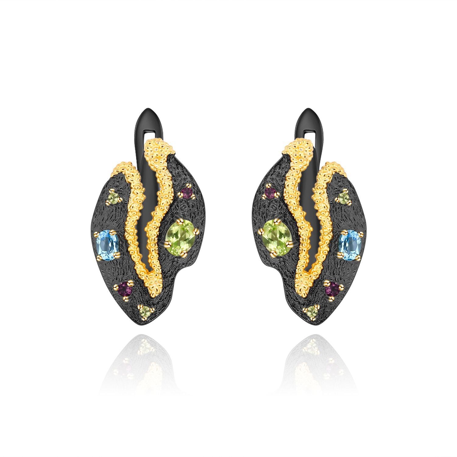Italian Craft Designer Gemstone Earrings Vintage Style with a Sense of Sophistication925Silver Natural Gemstone Earrings
