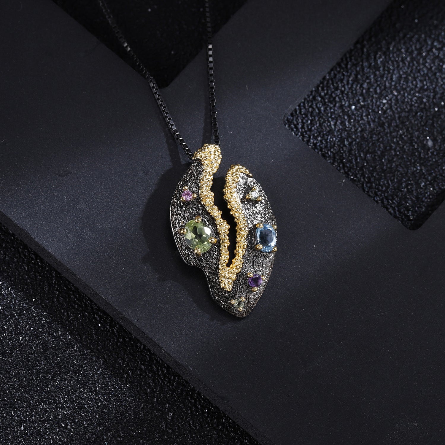Italian Craft Designer Gemstone Pendant Vintage Style with a Sense of Sophistication925Silver Natural Gemstone Necklace Pendant