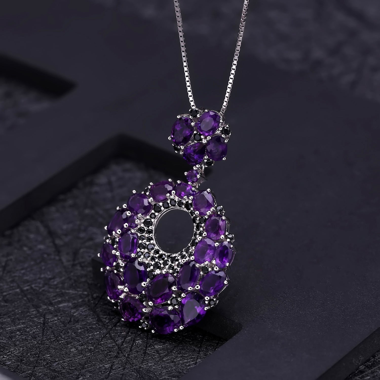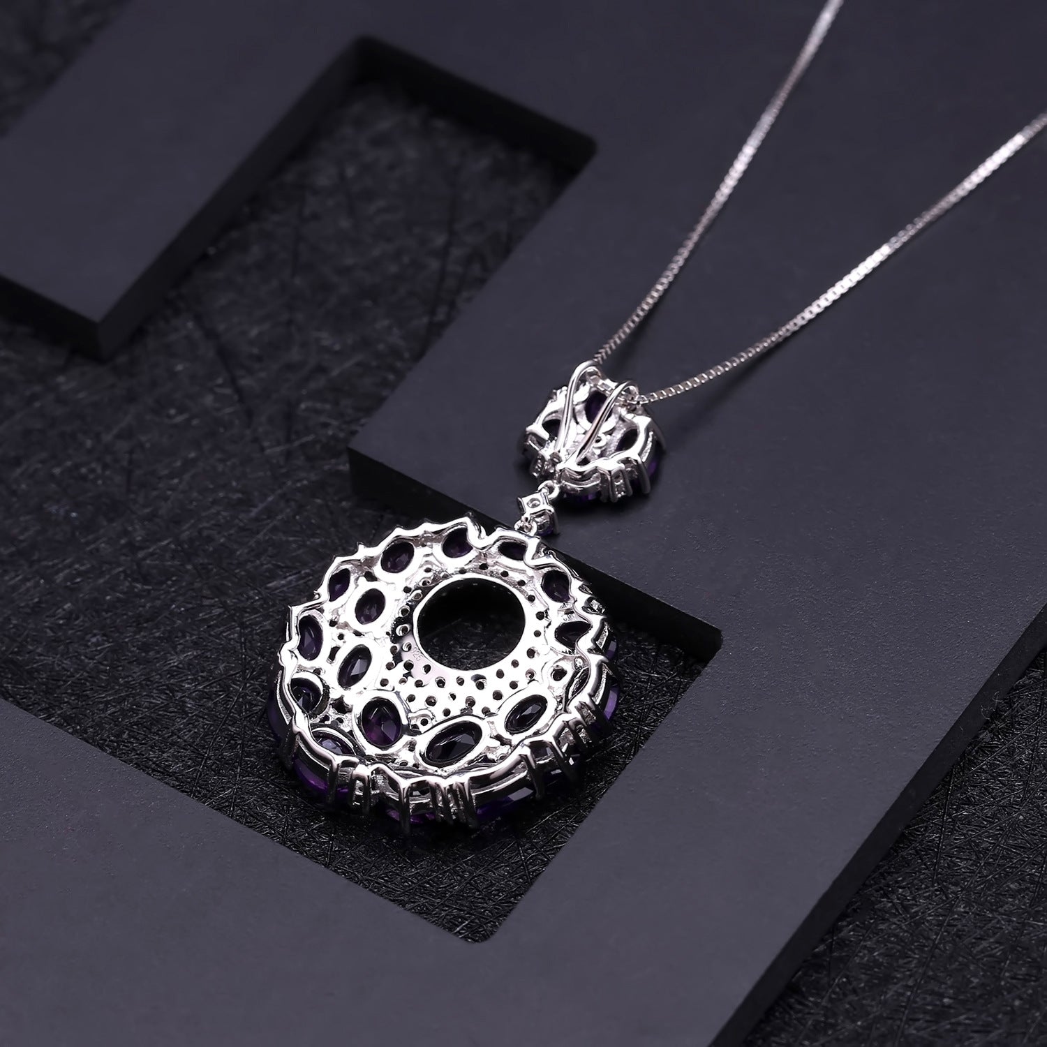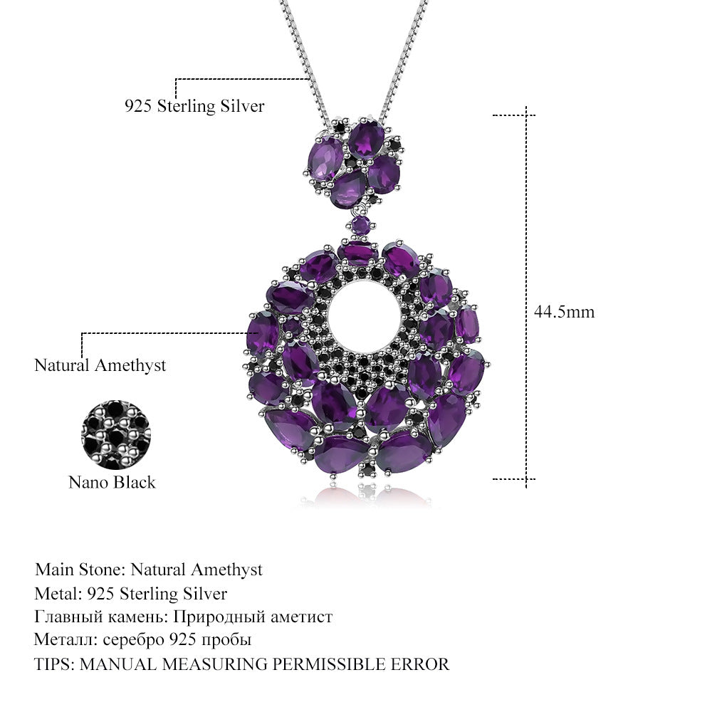 Italian Craft Designer Pendant Elegant Luxurious925Silver Inlaid Natural Gemstone Amethyst Necklace Pendant