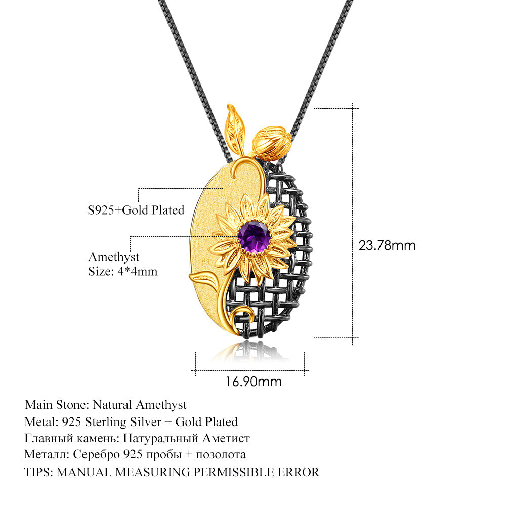 Italian Craft Designer Pendant Red Spider Lily High-end Feel925Silver Natural Amethyst Necklace Pendant
